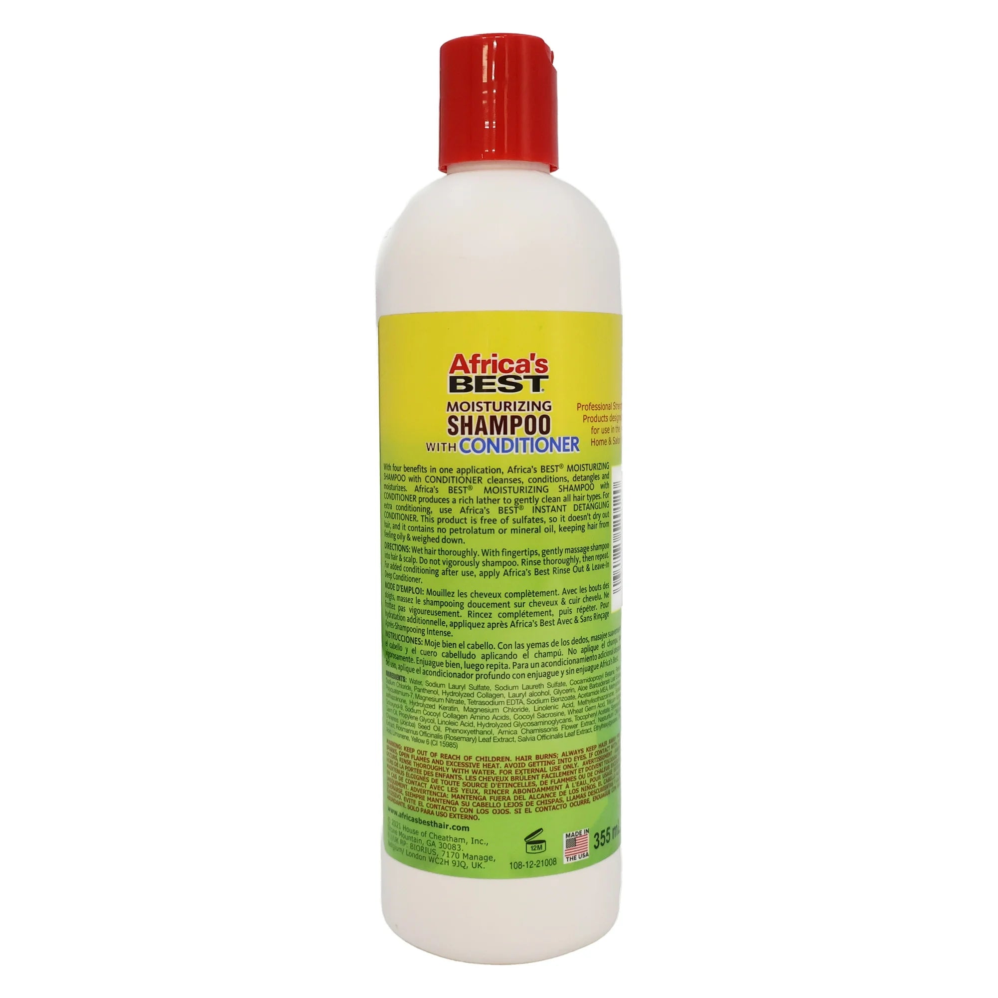 With four benefits in one application, Africa’s best moisturizing shampoo with conditioner cleanses, conditions, the tangles, and moisturizes. Africa’s best moisturizing shampoo with conditioner produces a rich lather to gently clean all hair types. For extra conditioning, use Africa’s best instant detangling conditioner.