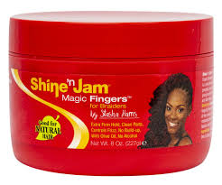 Shine n Jam Magic Fingers for Braiders is a versatile new product designed to work on any hair texture to achieve multiple styles such as braids, ponytails, locs, and twists. Easy to apply and formulated with special emollients to keep hair silky and sleek, giving excellent hold and reducing frizz without leaving residue. Excellent for braiding to create clean parts and laid edges. Great for natural hair and extensions.