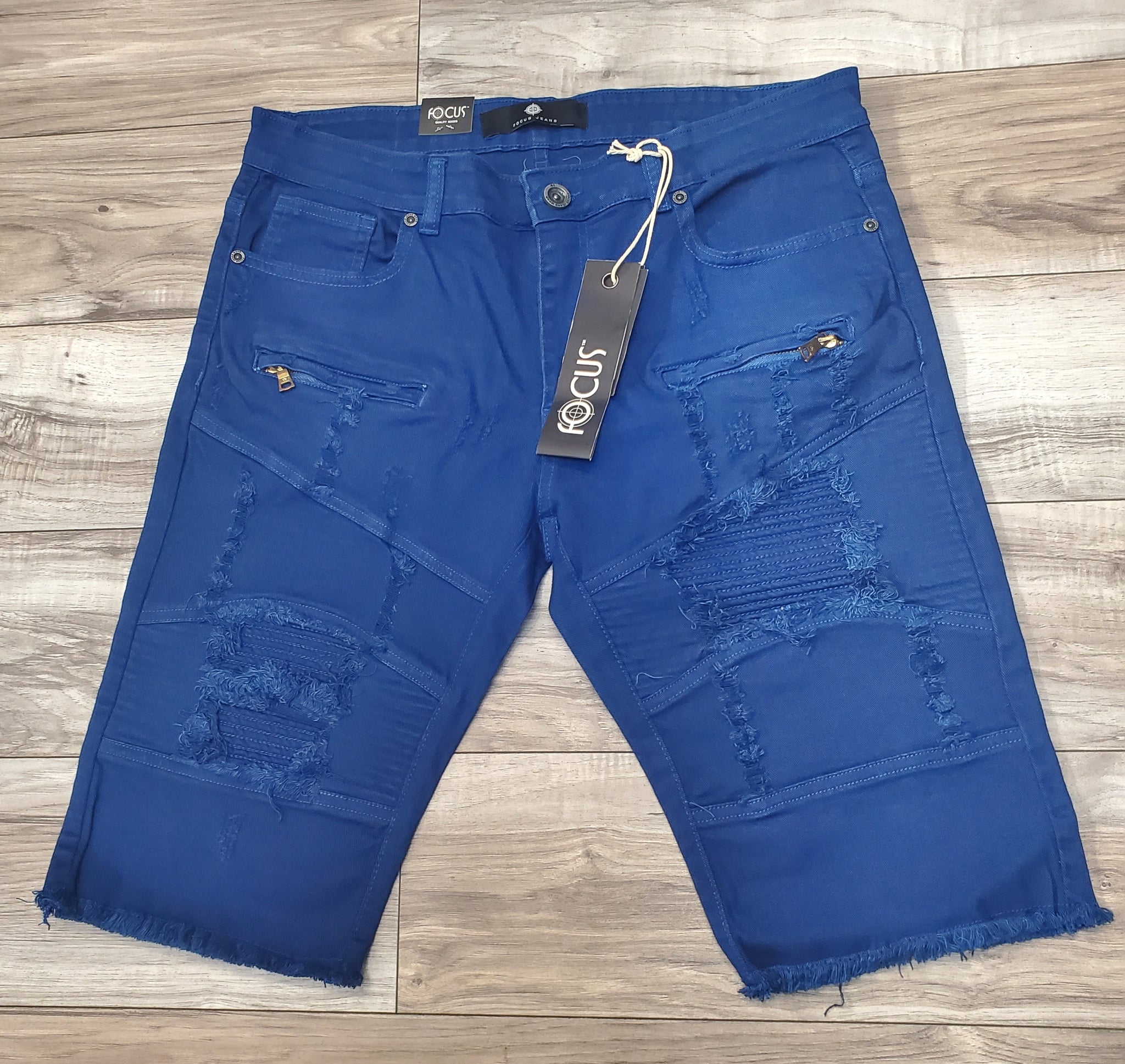 FOCUS MOTO RIPPED SHORTS (ROYAL)