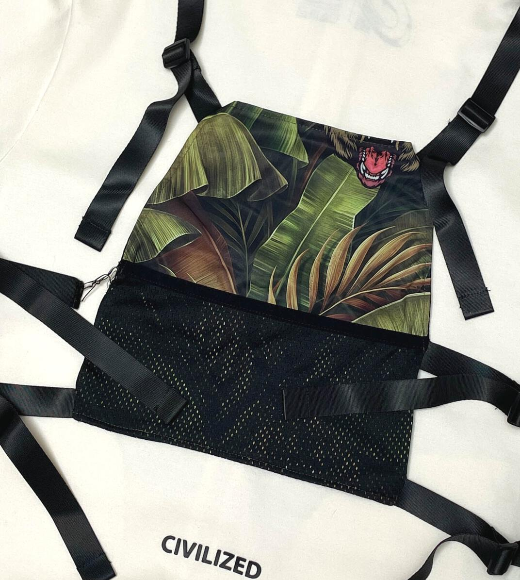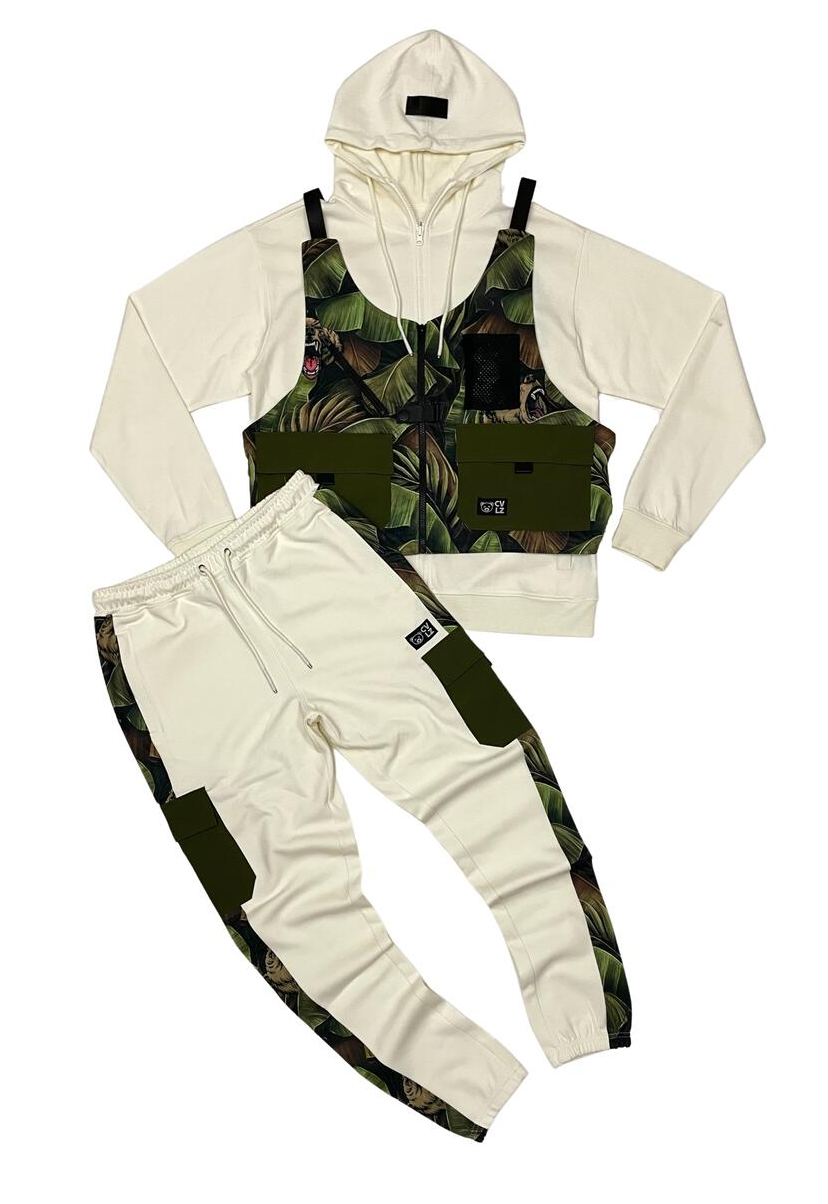 Double Jersey Drop Shoulder Hoodie And Nylon Vest Set ( DETACHABLE VEST ) Cargo Pockets & Woven Strap Detail On Vest