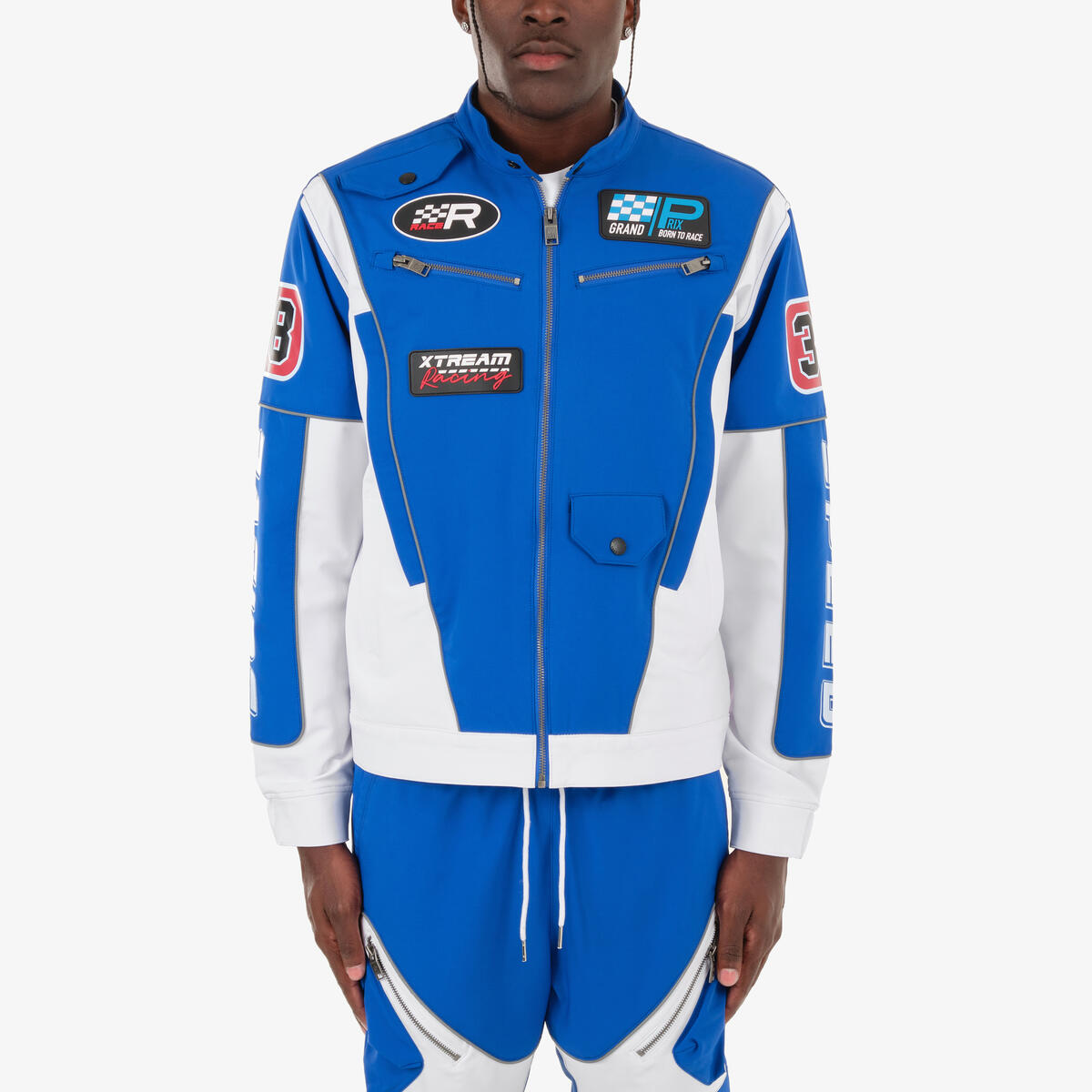 Racing Jacket with Patches and Matching Pants with Patches and Pockets