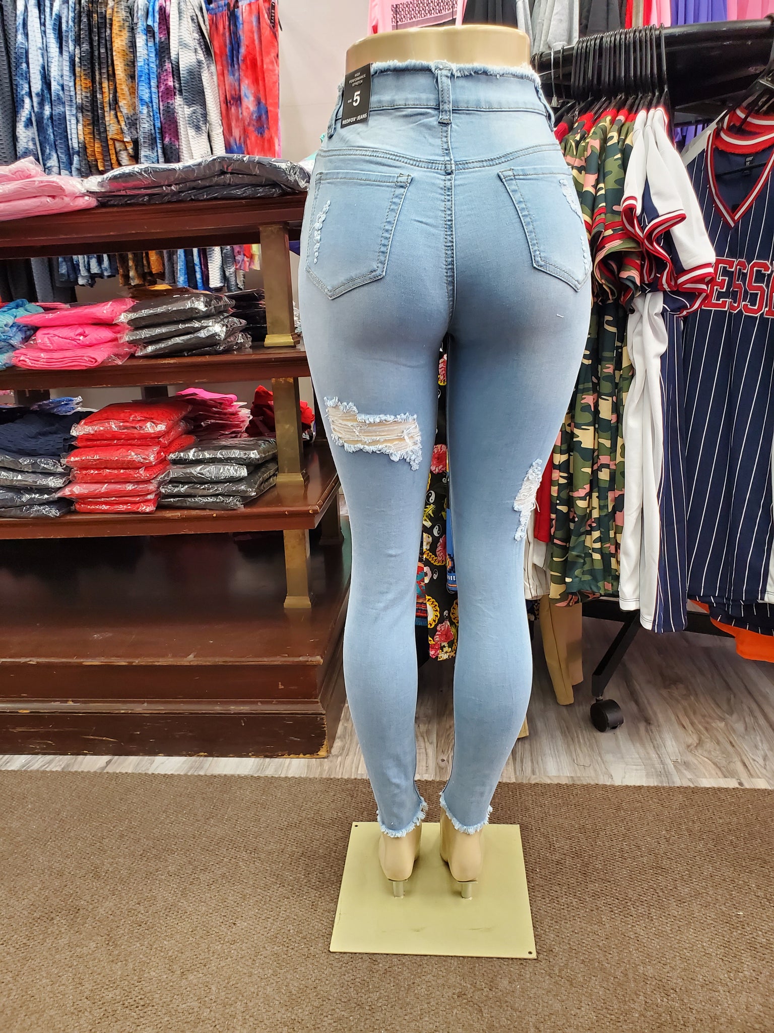 REDFOX HIGH WAISTED Rip Off Fringe Jeans (L. Blue) PA0434