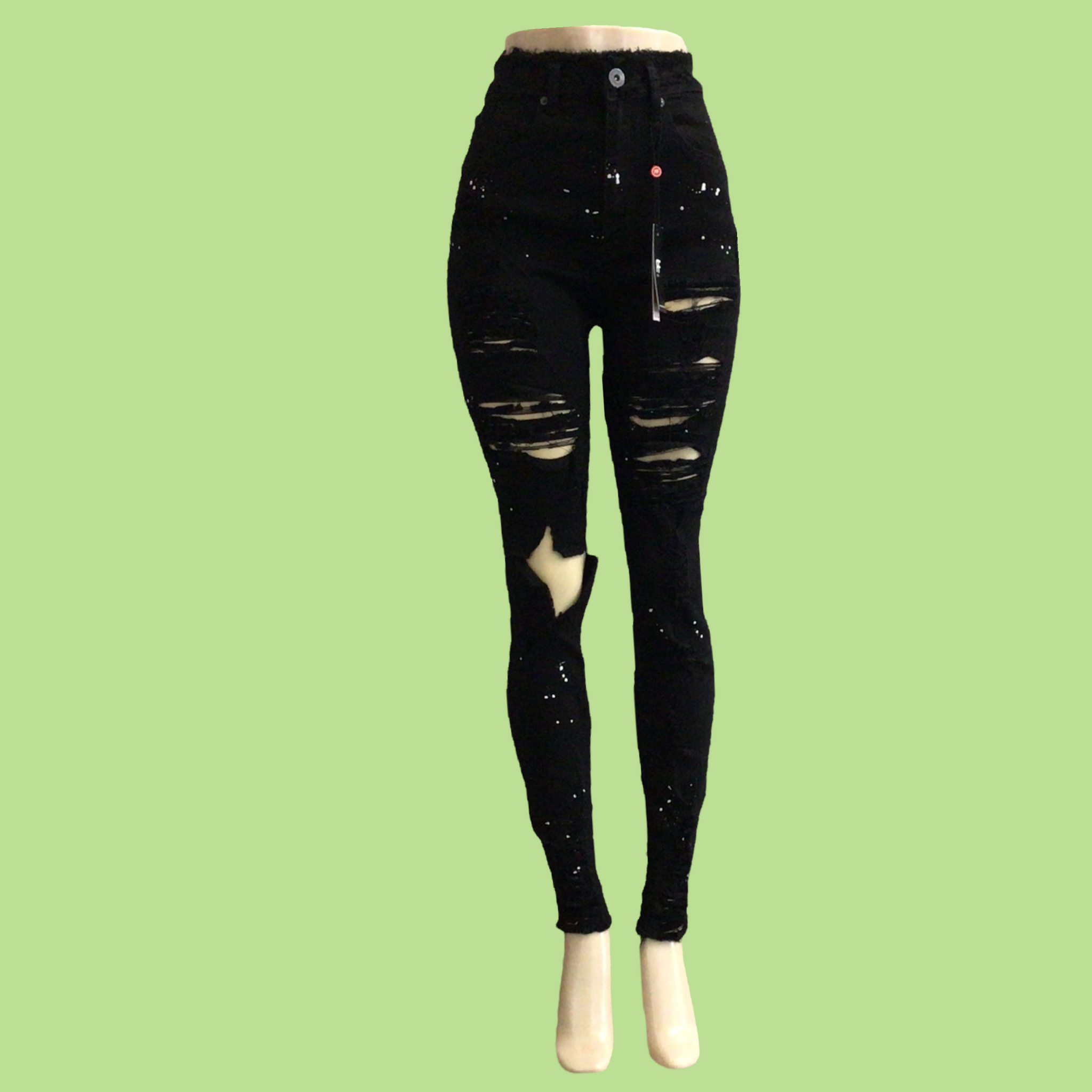 REDFOX HIGH WAISTED Rip Off Fringe Jeans SPLATTER (BLACK)PA0507