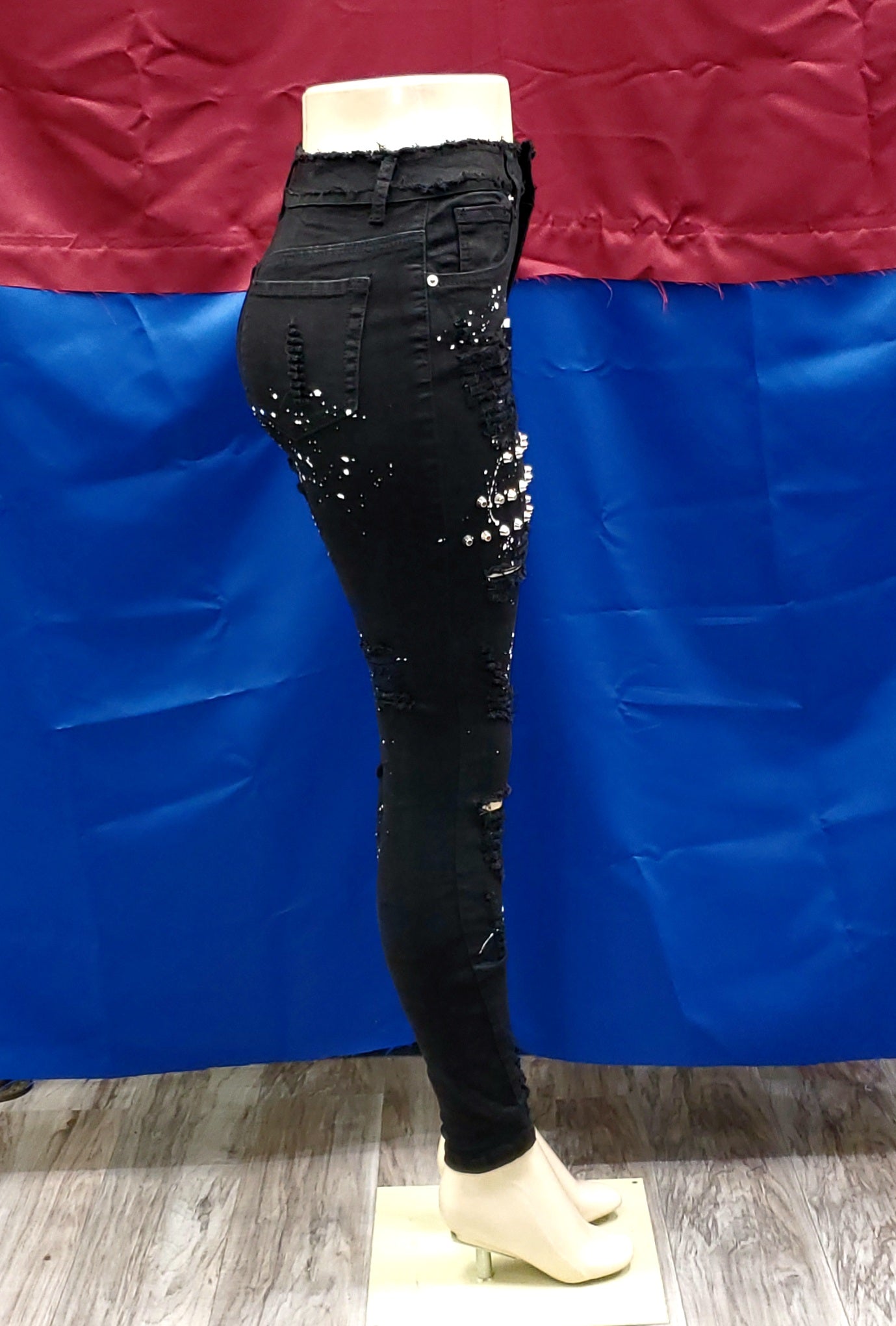 REDFOX HIGHWAIST JEANS WITH STUDS (BLACK) PA0493