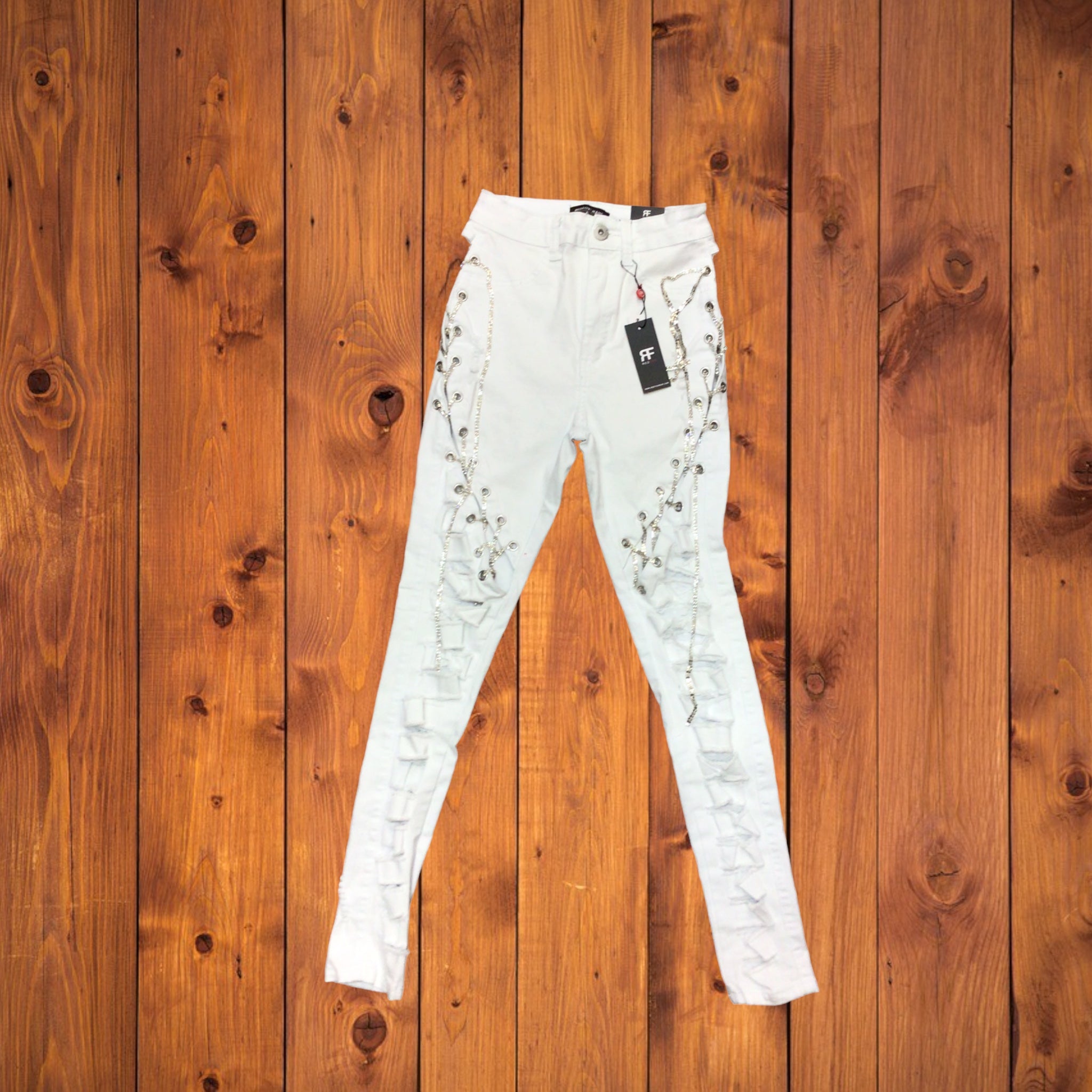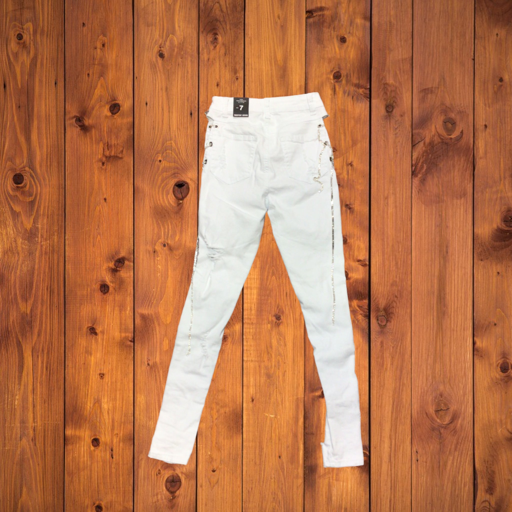 REDFOX HIGHWAIST RHINESTONE LACED JEAN (WHITE) PA0527