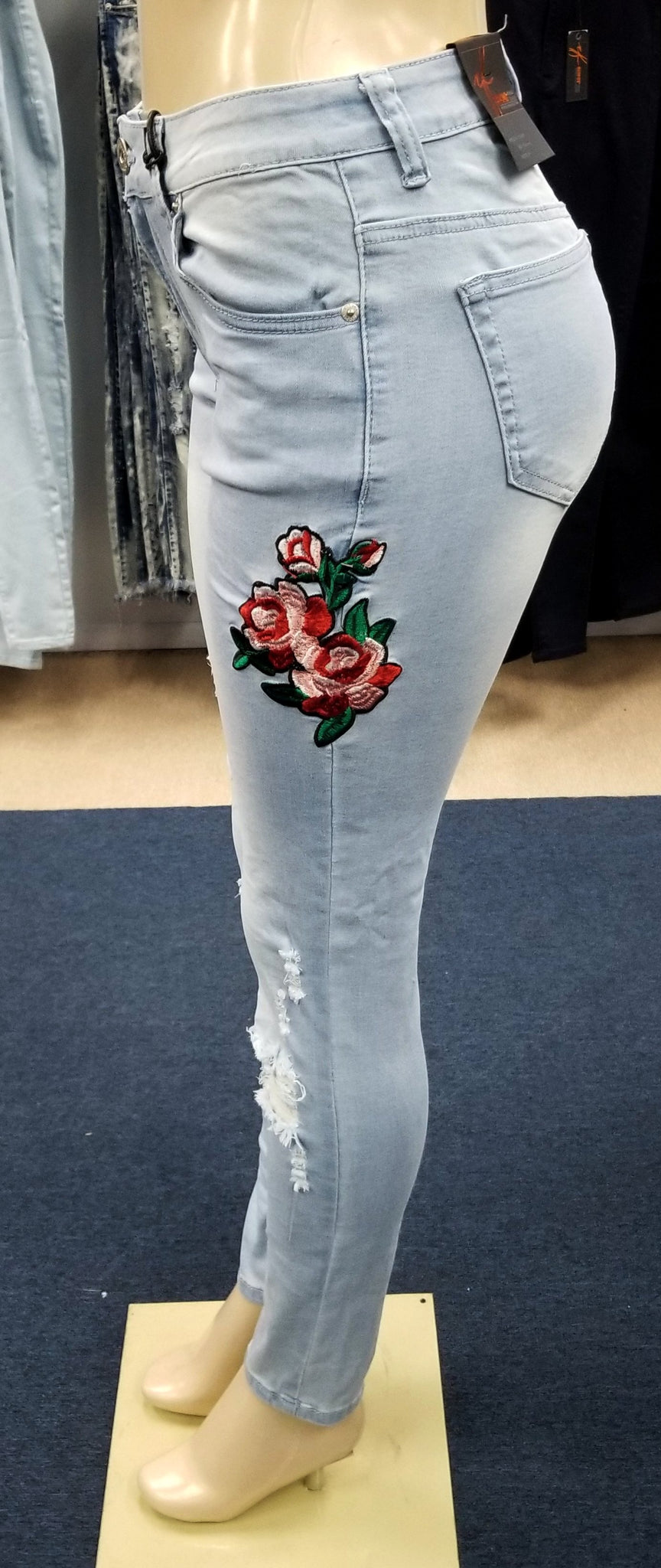 REDFOX LT BLUE EMBROIDERED ROSE JEANS