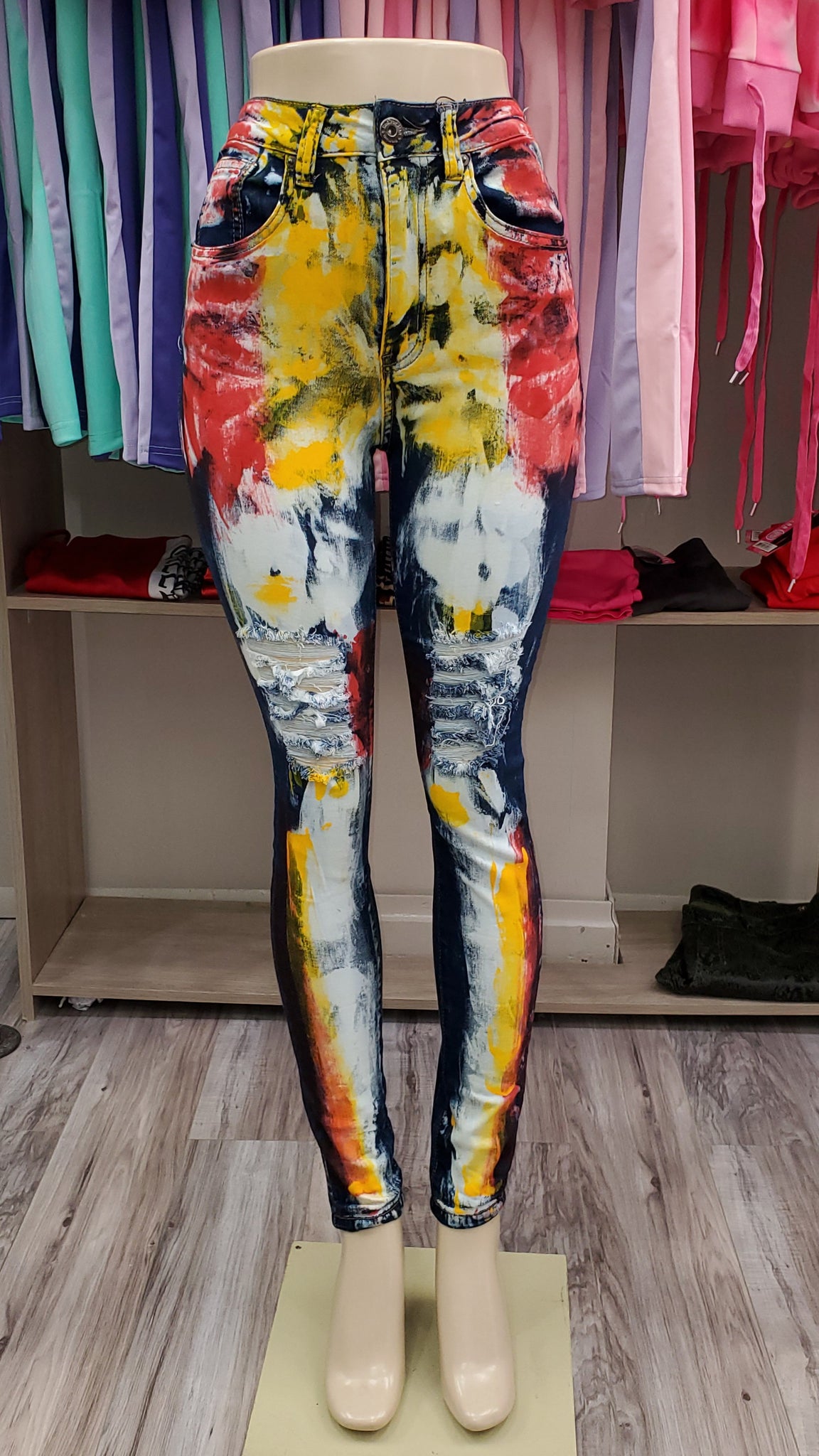 WOMEN'S RED FOX HIGHWAISTED MULTIPAINT JEANS (PA0401)