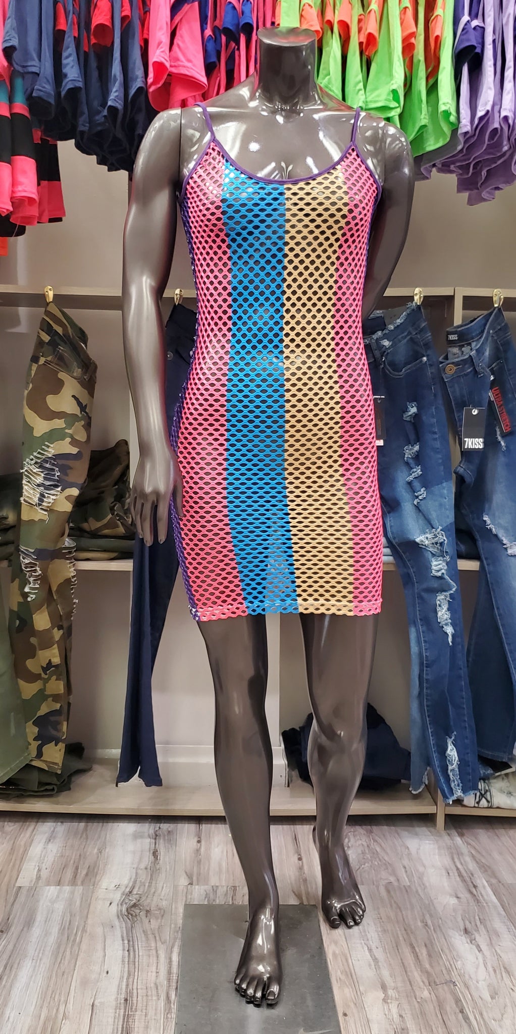 REDFOX MESH COLOR BLOCK DRESS (MULTI)