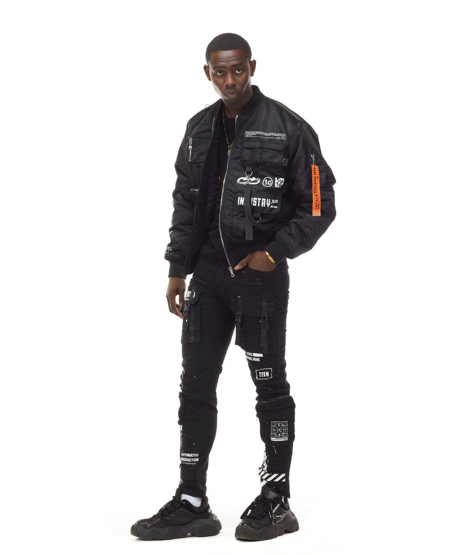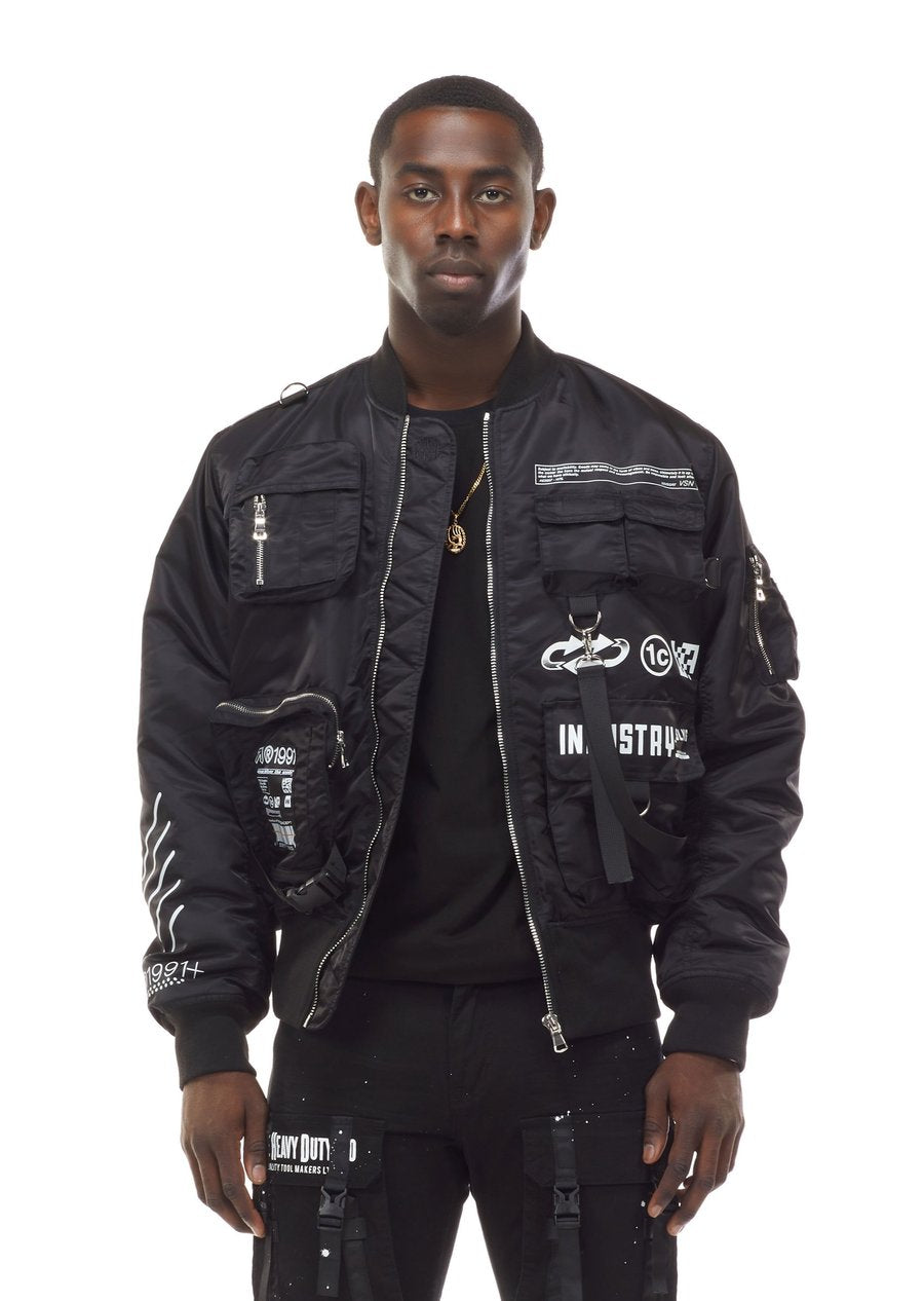 Spin off from the classic MA1 jacket, we created this utility inspired piece with handy pockets and graphics.