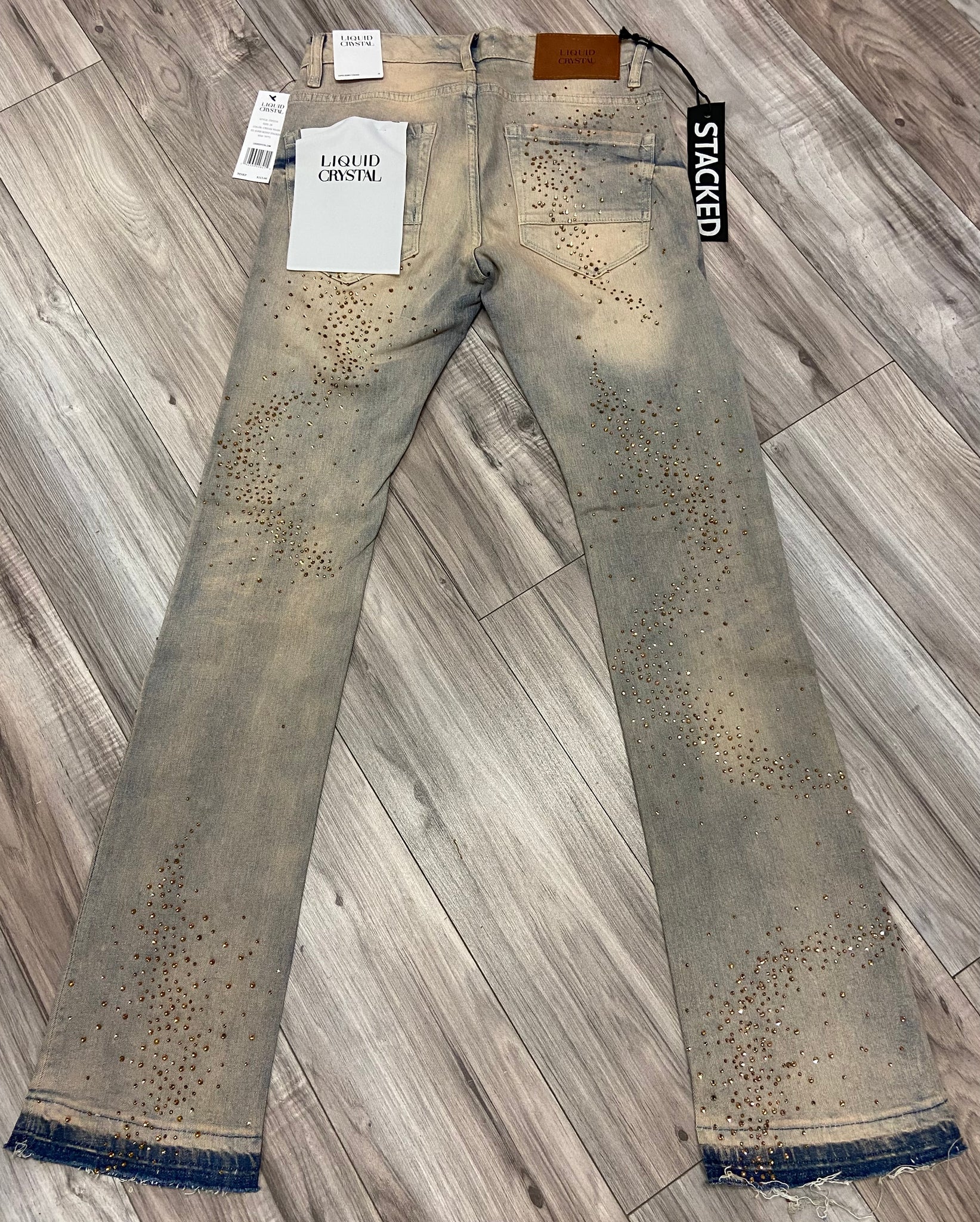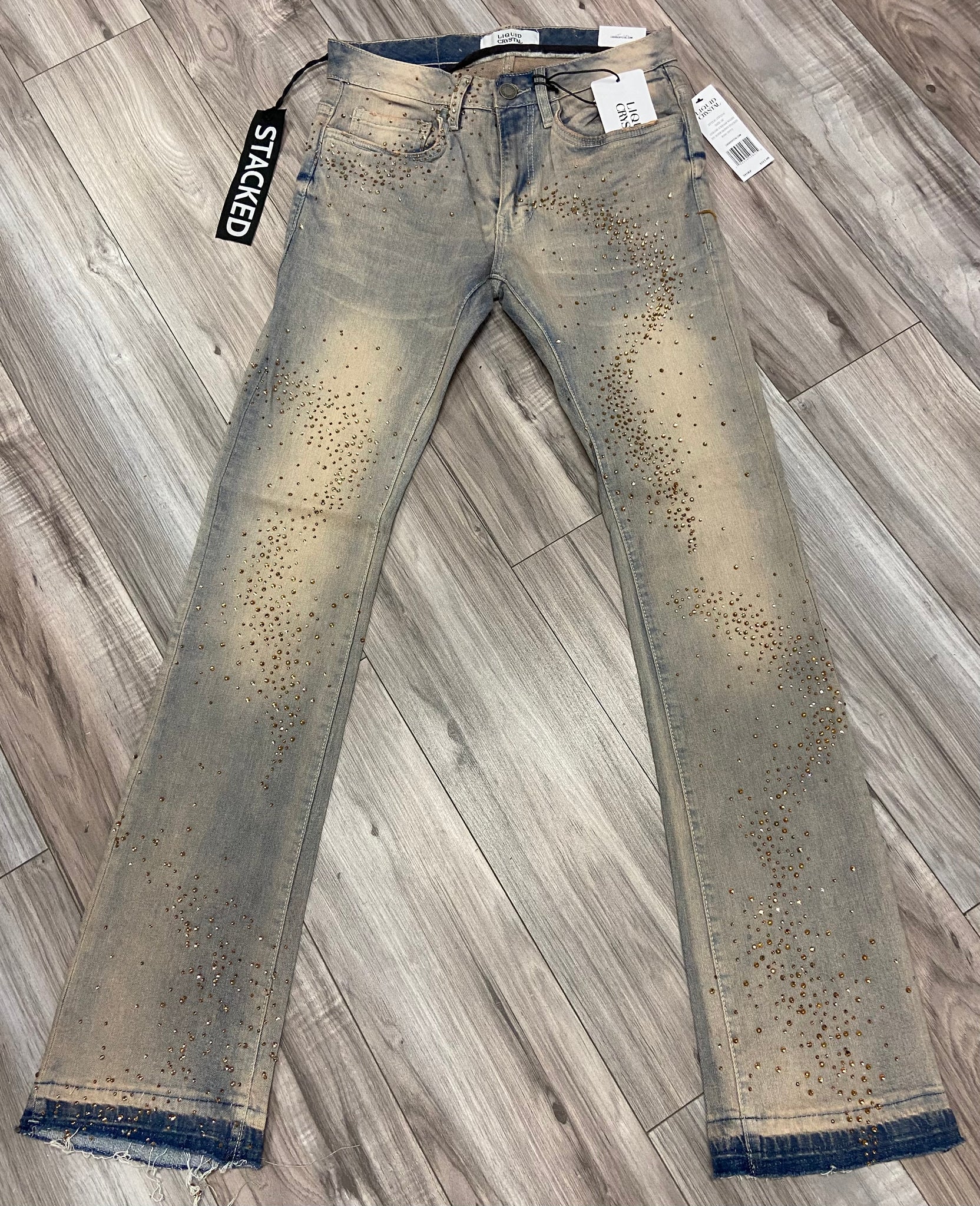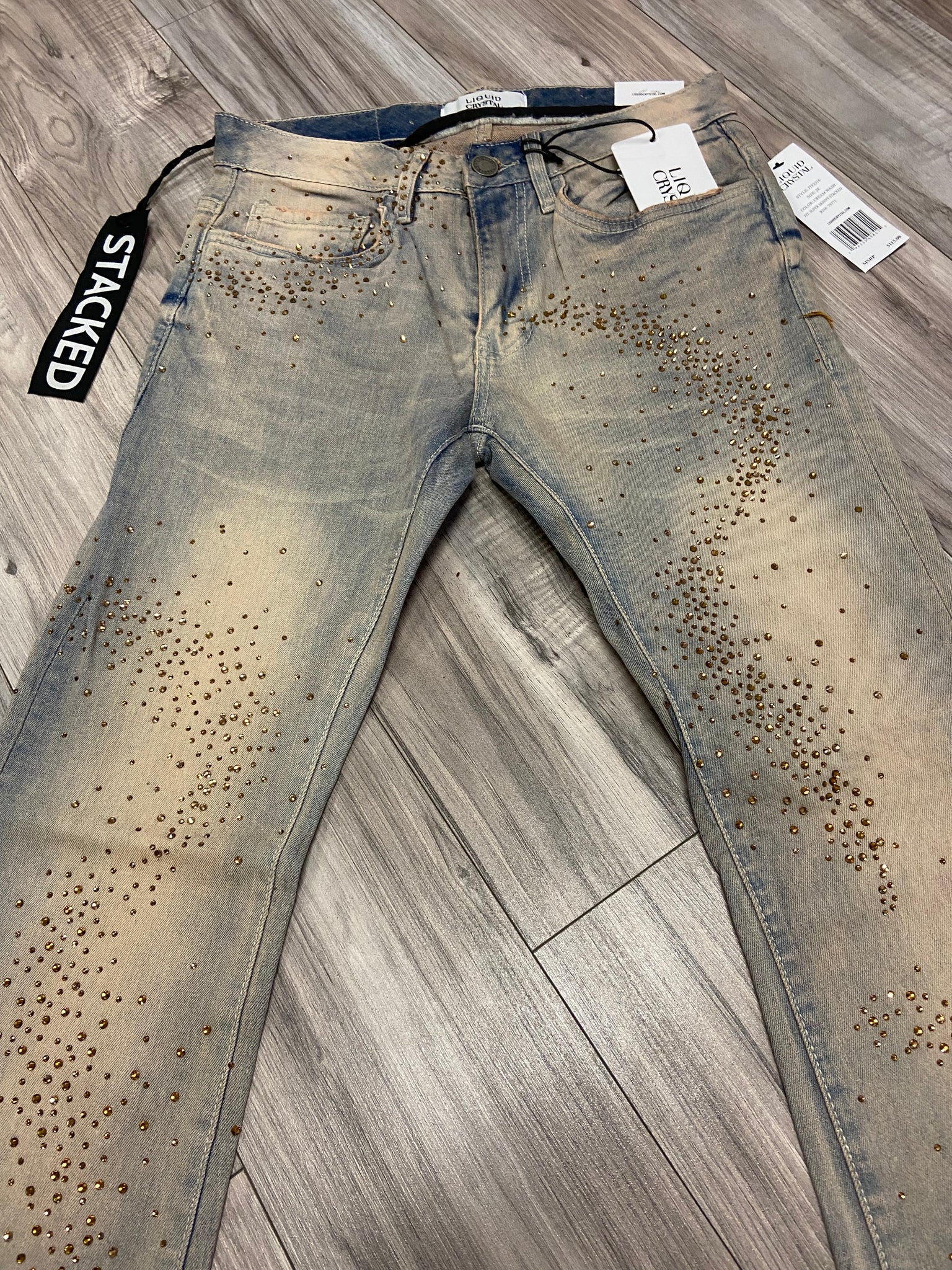 JORDAN CRAIG LIQUID CRYSTAL- RHINESTONE STACKED JEANS JTF2316 (CREAM WASH)