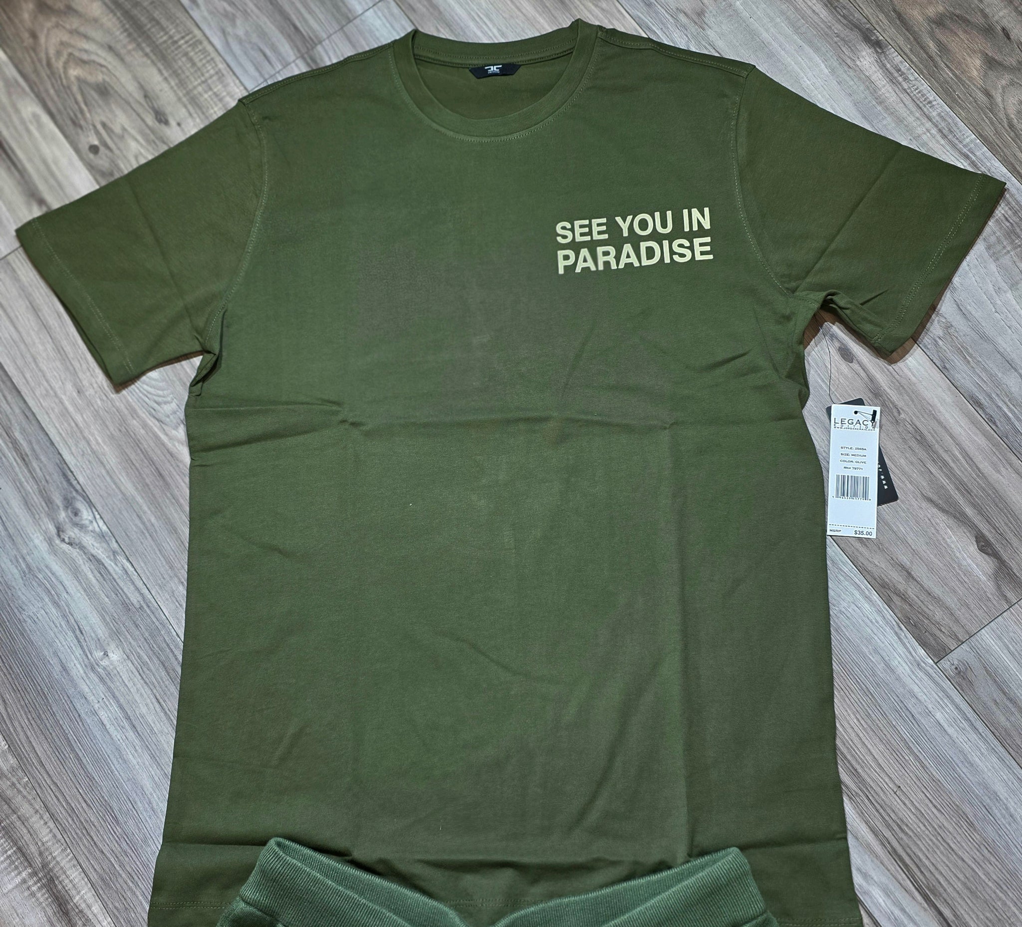Elevate your casual wardrobe with the Jordan Craig Paradise T-Shirt and matching Paradise Knit Shorts in a sleek Olive colorway. Designed for the modern man, this set combines comfort with a touch of understated style, perfect for everyday wear or a relaxed weekend outing. The regular fit ensures ease of movement while maintaining a sharp silhouette. Crafted with attention to detail, this duo from the Jordan Craig brand is a testament to effortless fashion for the contemporary individual.
