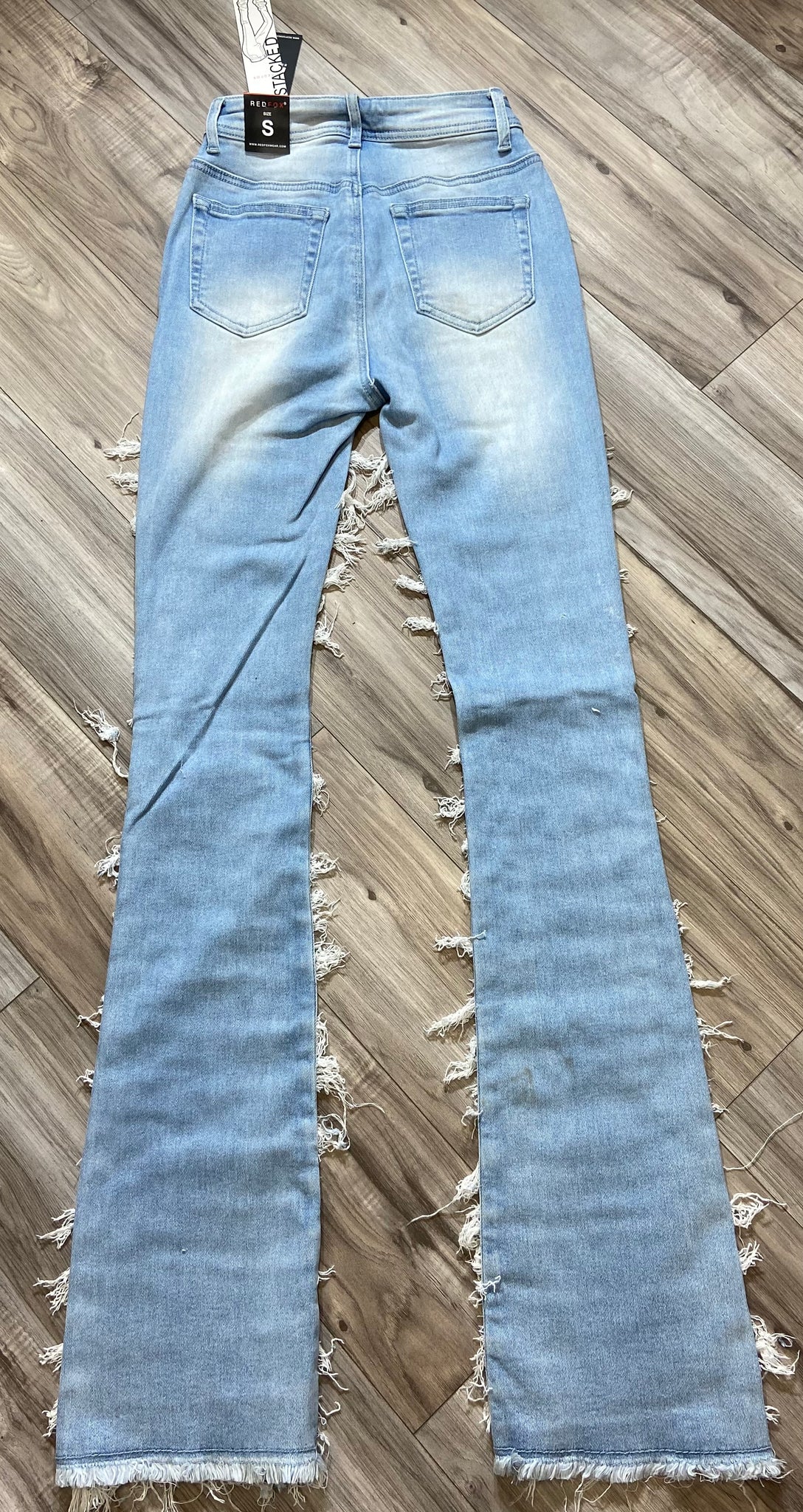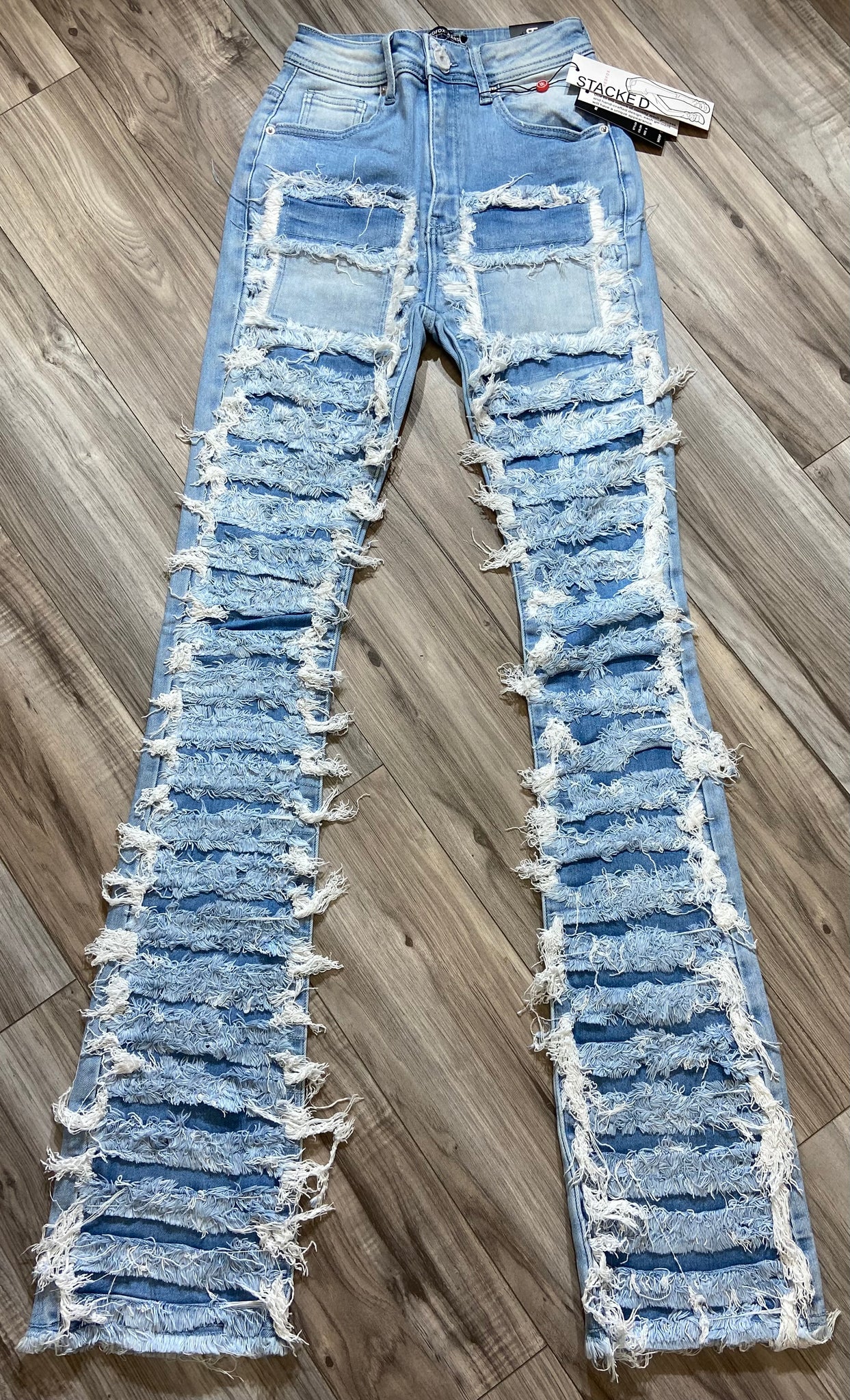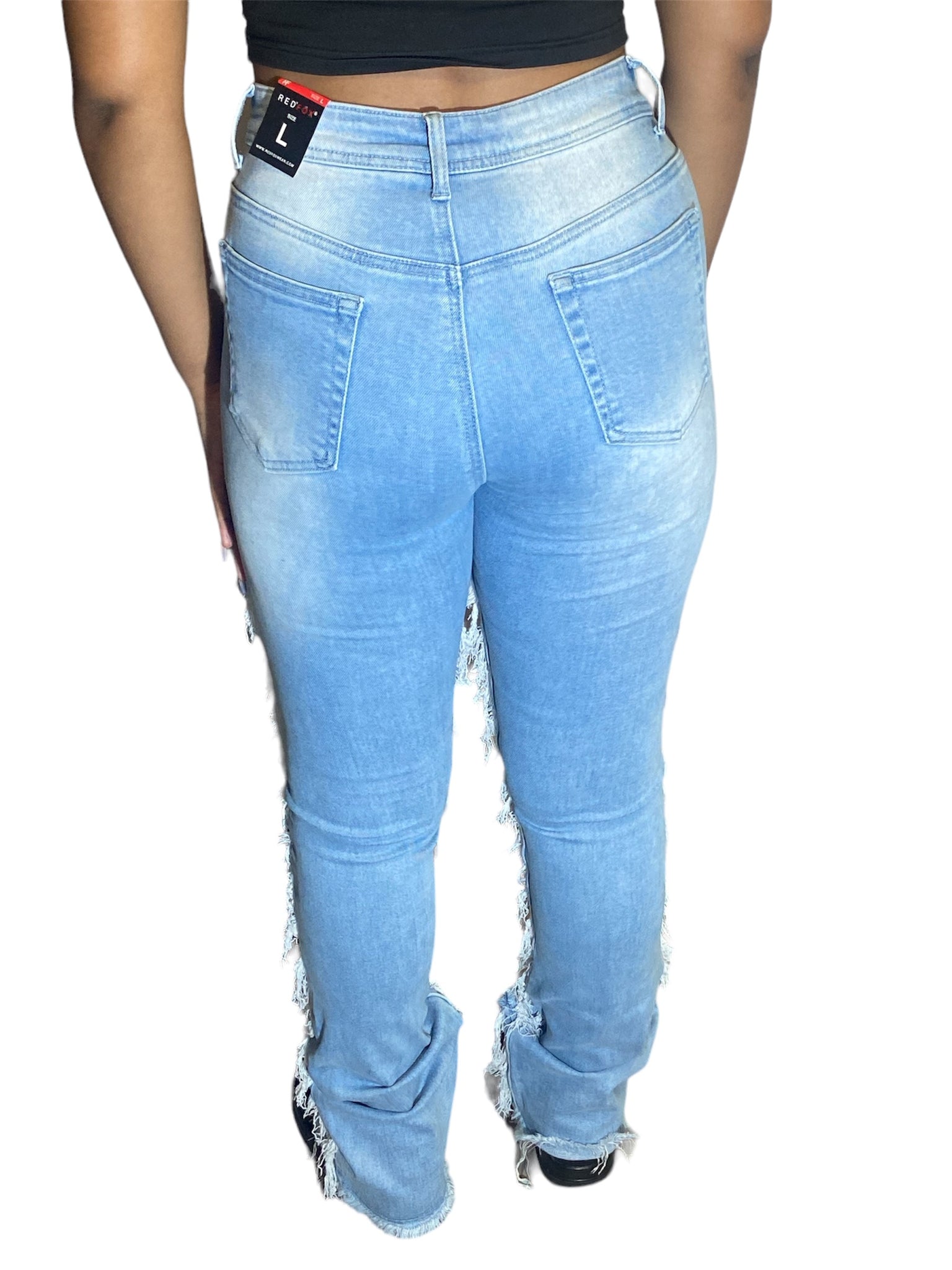 RED FOX WOMEN'S STACKED FRAYED HEAVY DENIM PANTS PA4436 (LT BLUE)