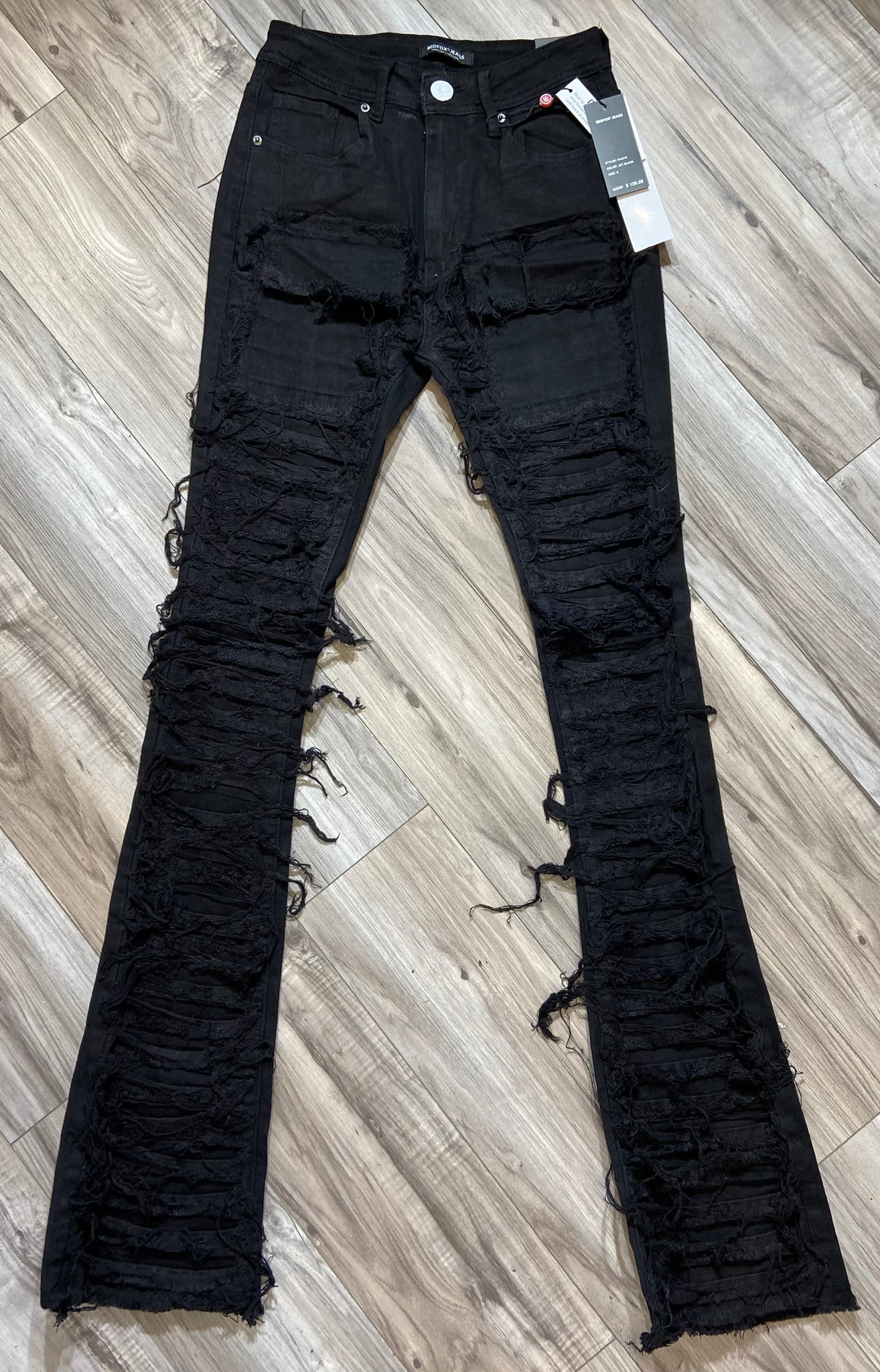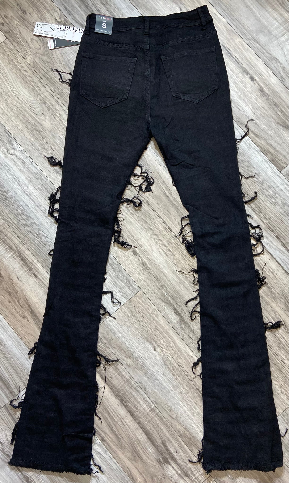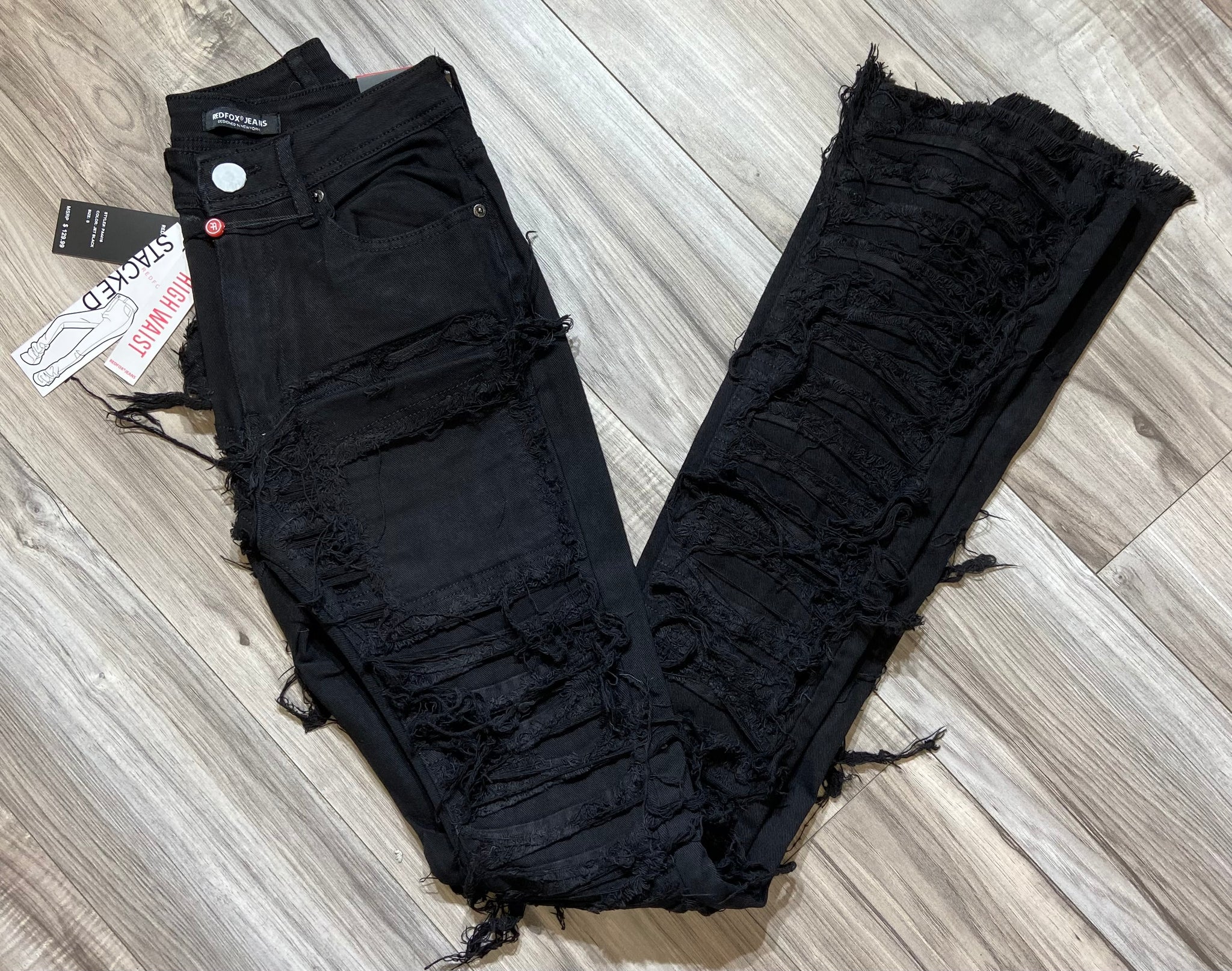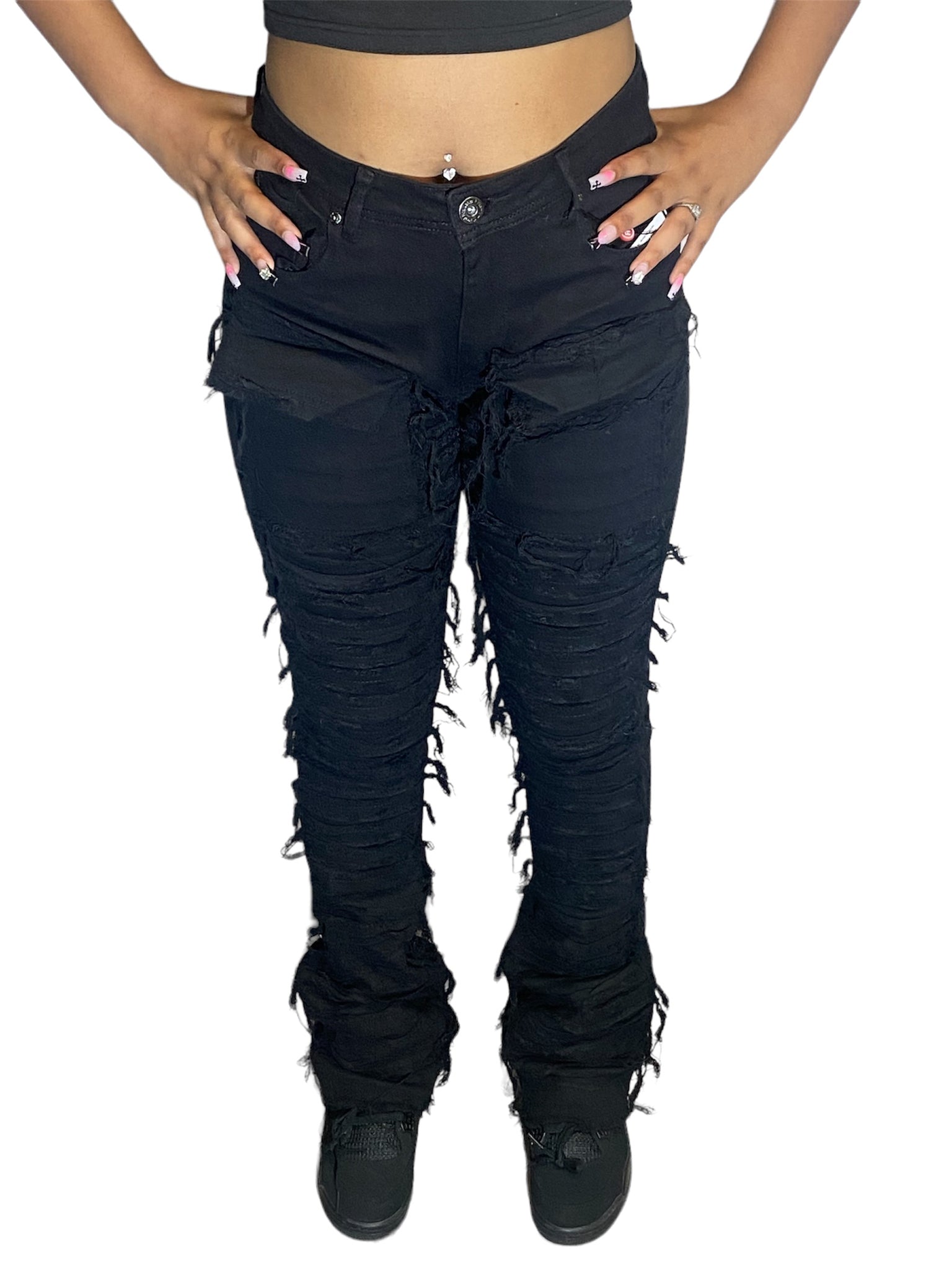 RED FOX WOMEN'S STACKED FRAYED HEAVY TWILL PANTS PA4416 (JET BLACK)