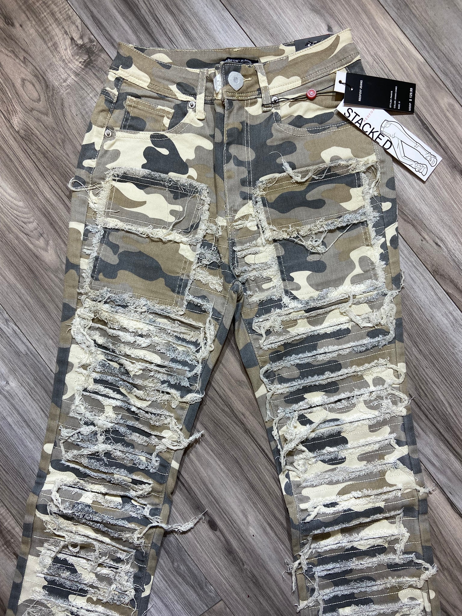 STACKED FRAYED HEAVY TWILL PANTS PA4416 (KHAKI CAMO)