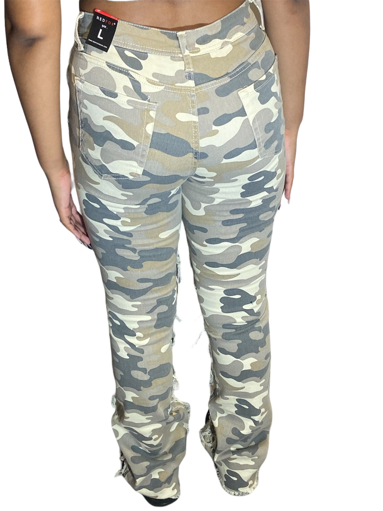 RED FOX WOMEN'S STACKED FRAYED HEAVY TWILL PANTS PA4416 (KHAKI CAMO)