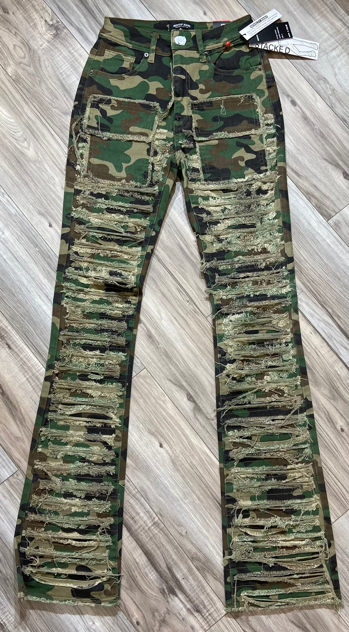 STACKED FRAYED HEAVY TWILL PANTS PA4416 (WOODLAND)