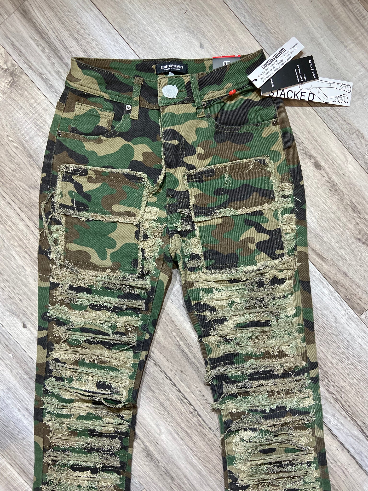RED FOX WOMEN'S STACKED FRAYED HEAVY TWILL PANTS PA4416 (WOODLAND)