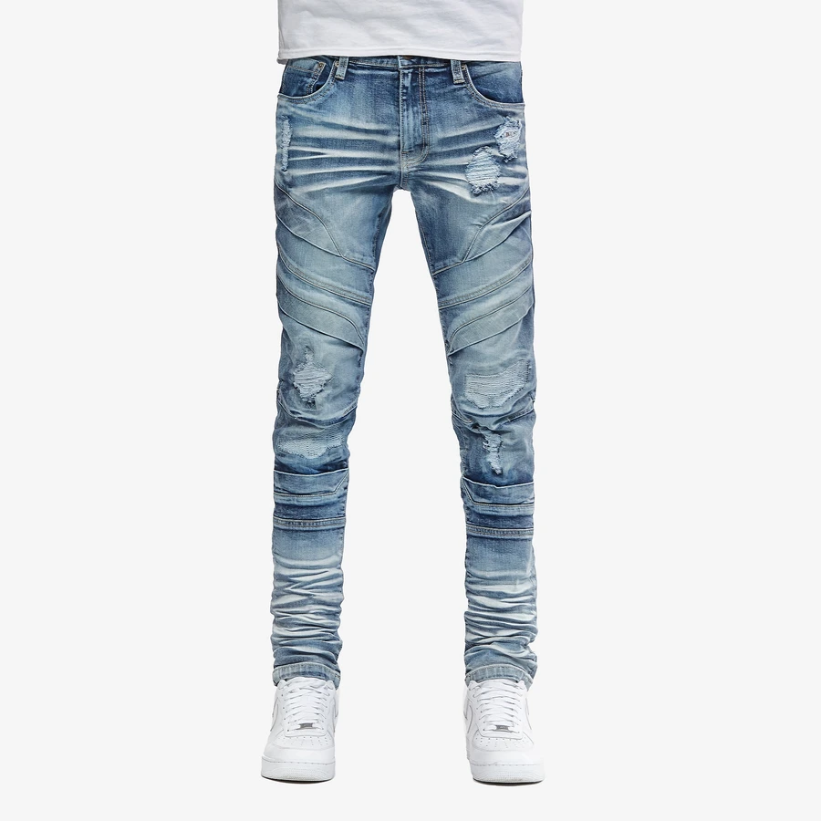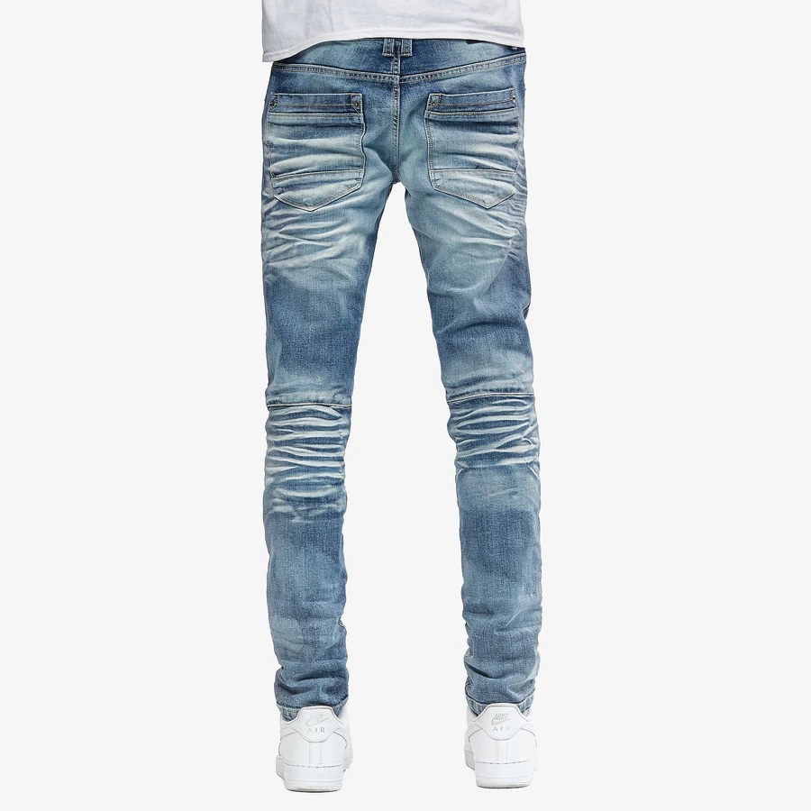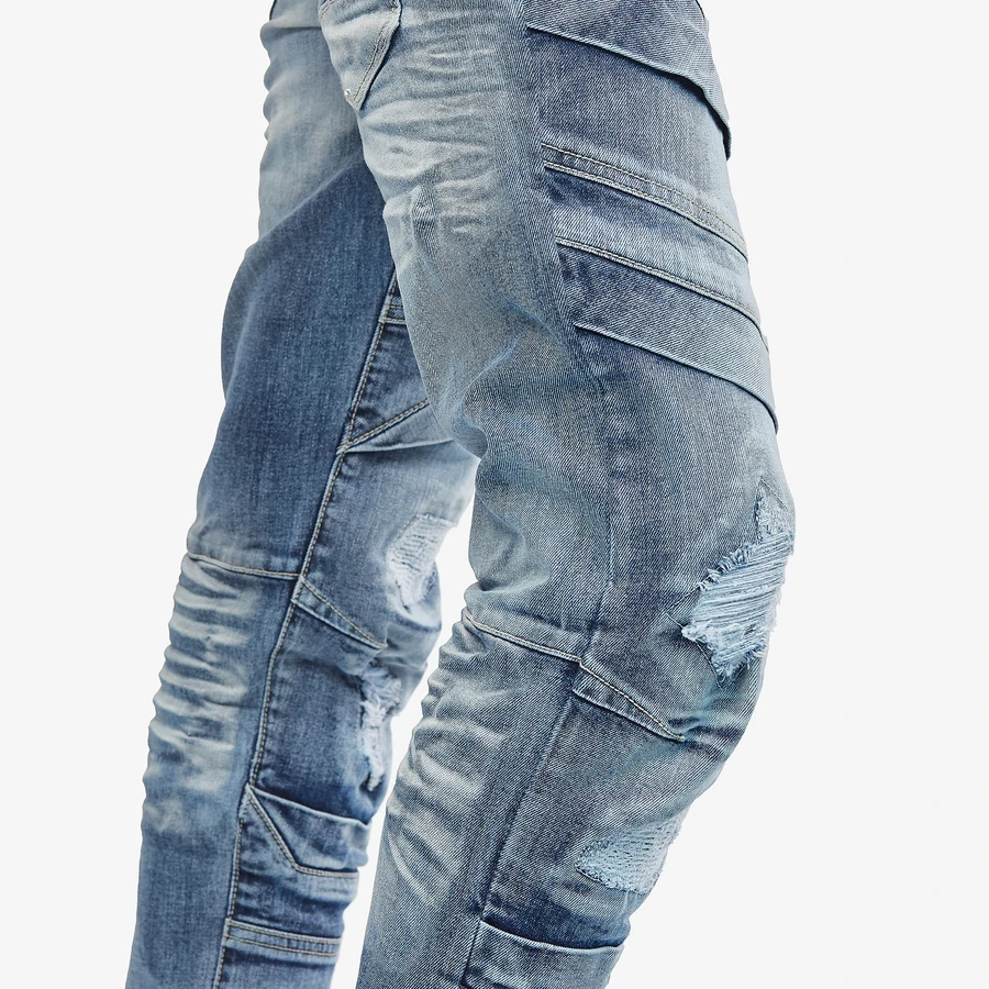 COPPER RIVET PREMIUM LIGHT BLUE SAND WASHED MOTO JEANS