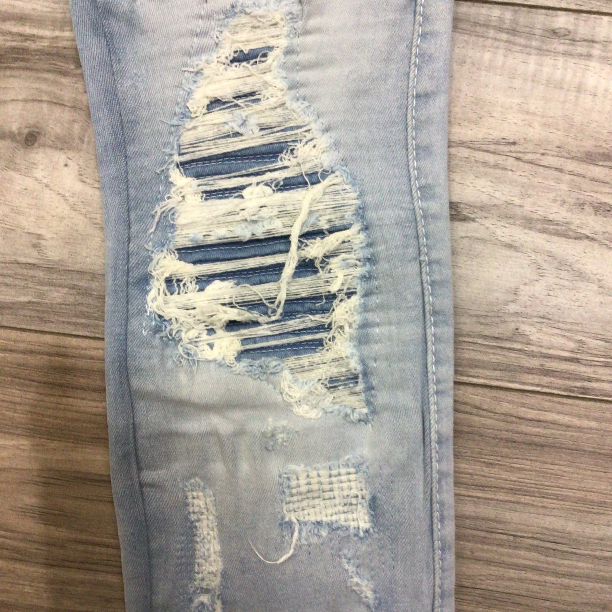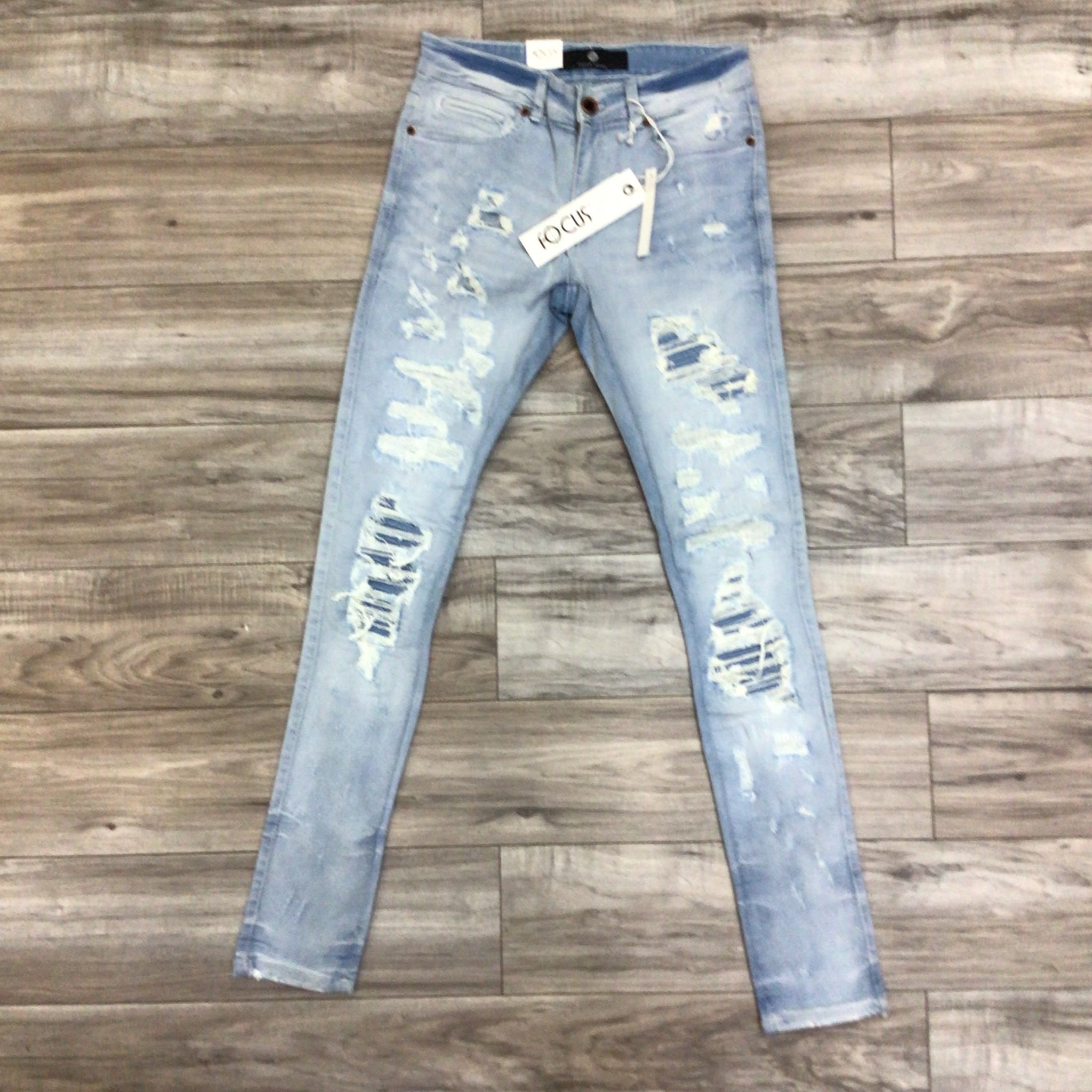 FOCUS LIGHT WASH DISTRESSED W/MOTTO JEANS