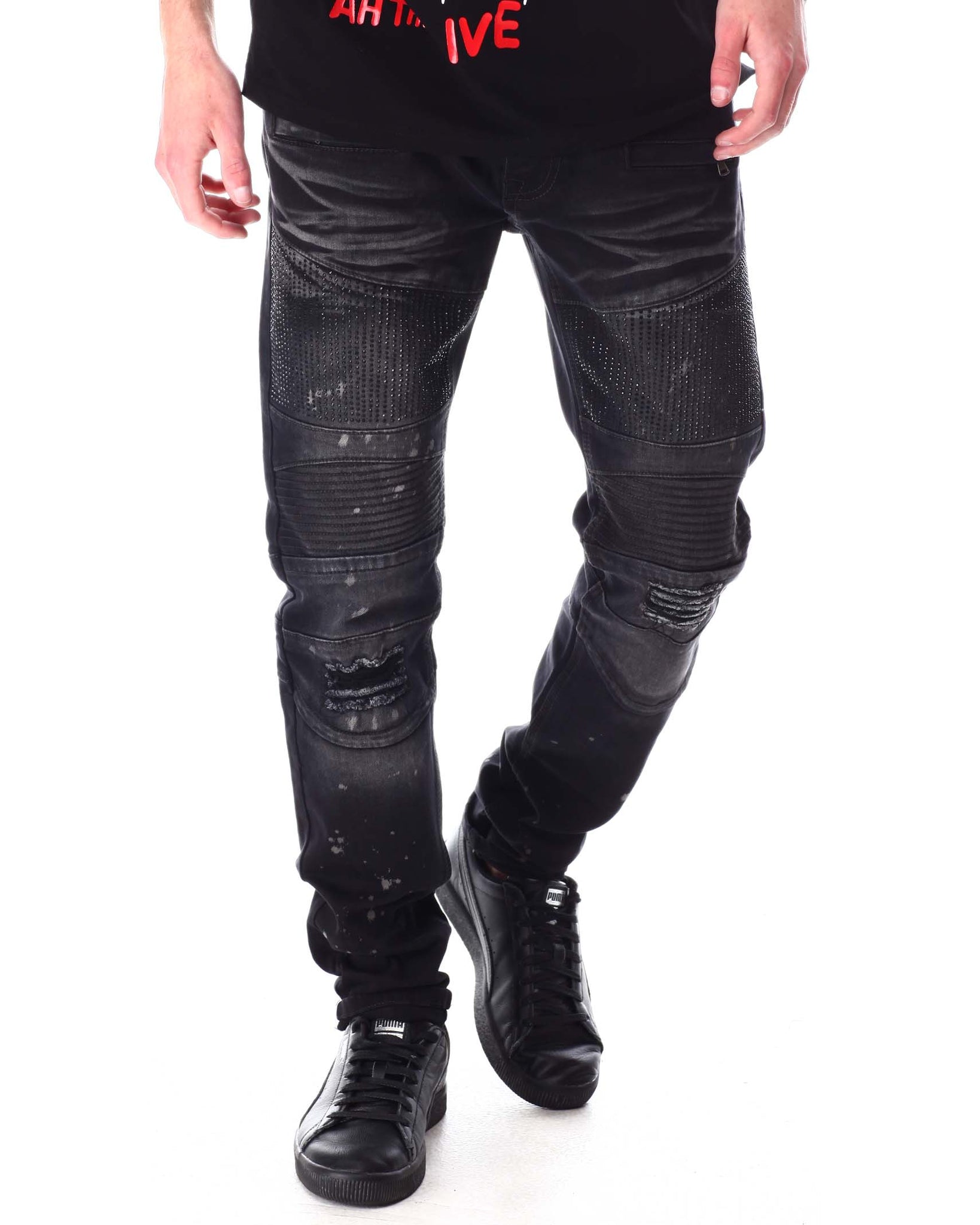 MEN CREATE 2MRW MOTO JEAN W/BLACK STONES