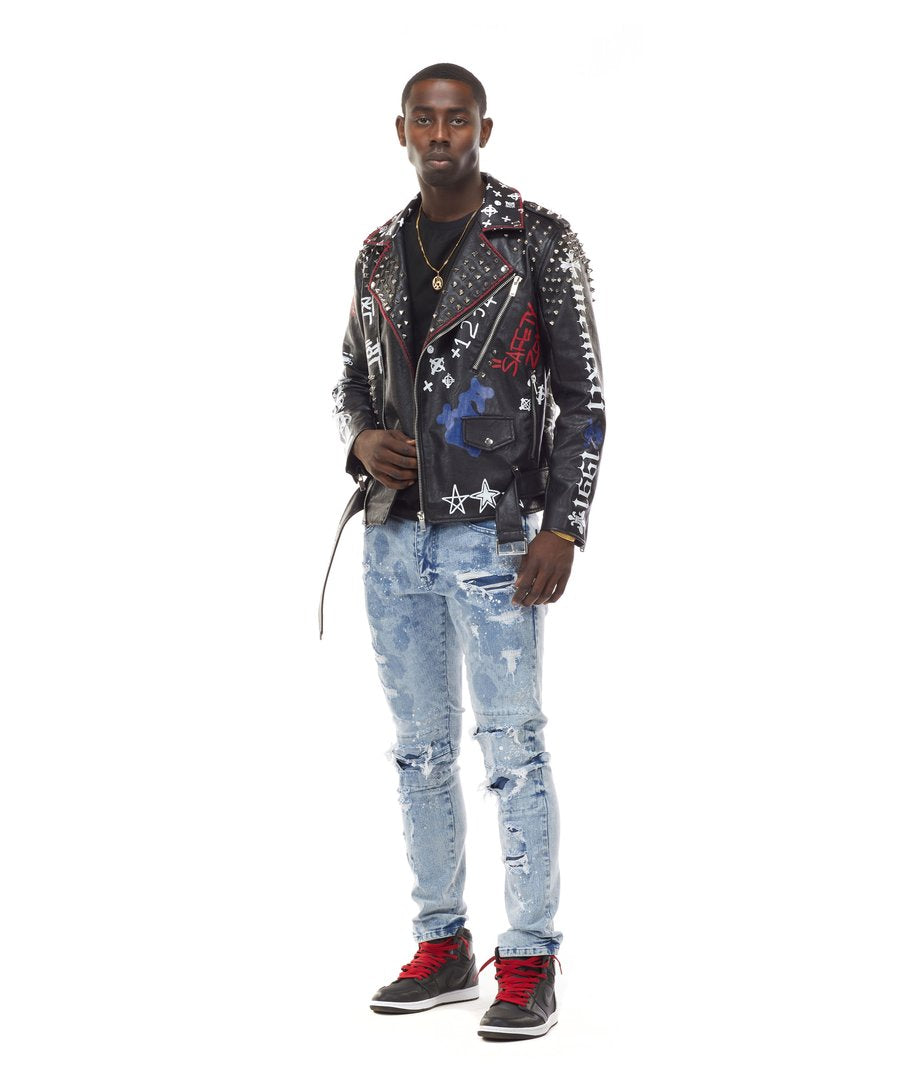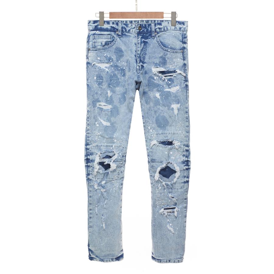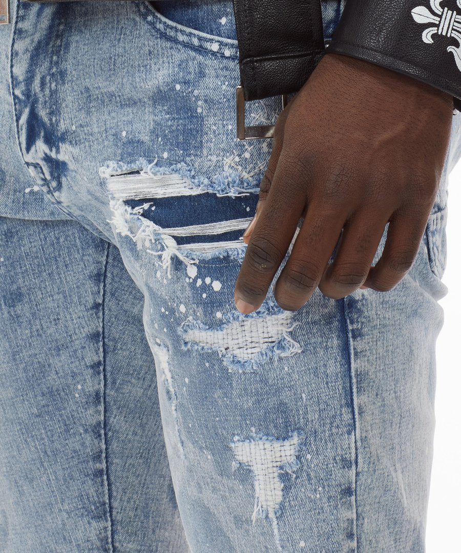 HEAVY RIP & REPAIR JEANS IS CONSIDERED A LAZY FIT WITH DISTRESSES AND SEVERAL WASHES THROUGHOUT THE DENIM.