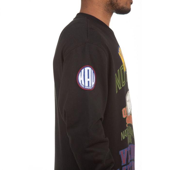 - LS KNIT CREWNECK W/ WOOL APP, TWILL APP, SLV PATCH, PRINT, EMB