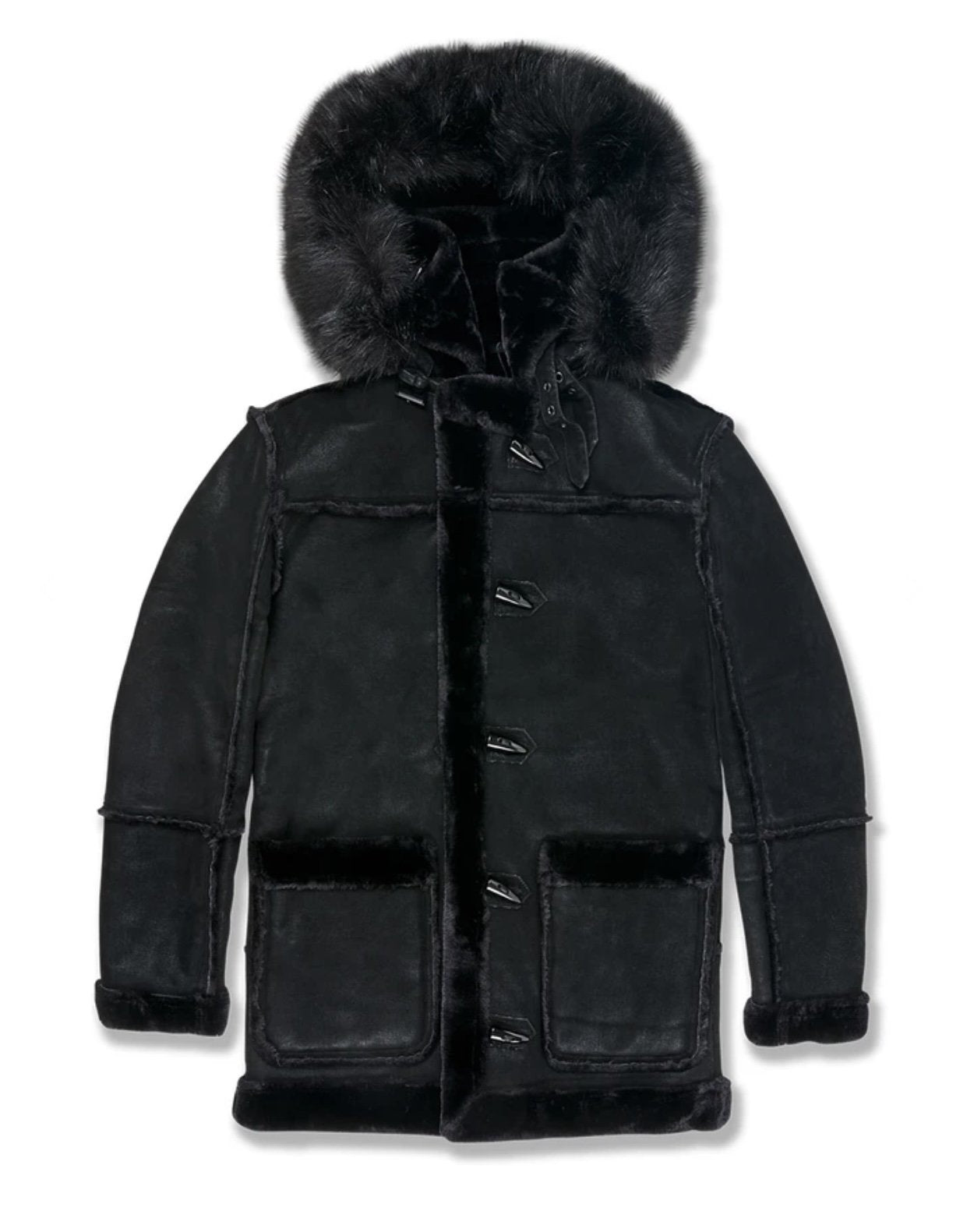 REDFOX DAKOMA FAUX SUEDE COAT W/FAUX FUR TRIMMED HOOD (BLK)