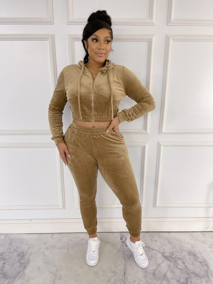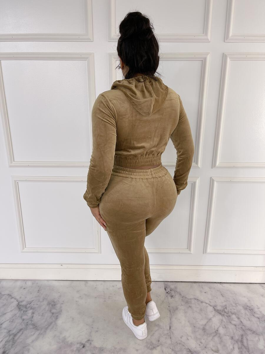 ACCESS LADIES 2PC ACTIVEWEAR VELVET JOGGER OUTFIT SET (BROWN)