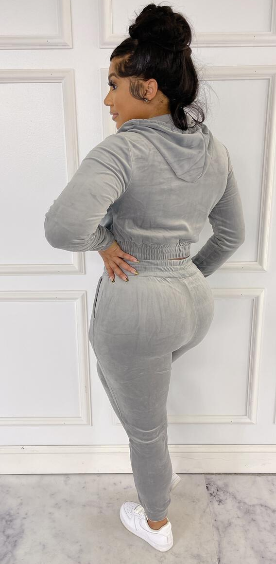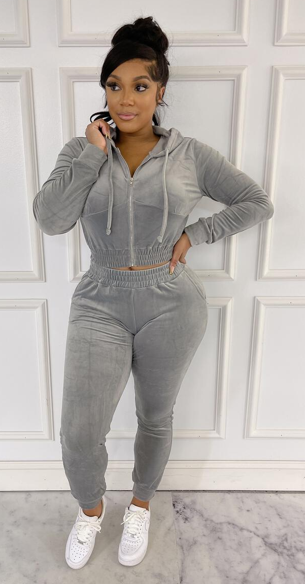 ACCESS LADIES 2PC ACTIVEWEAR VELVET JOGGER OUTFIT SET (CHARCOAL)