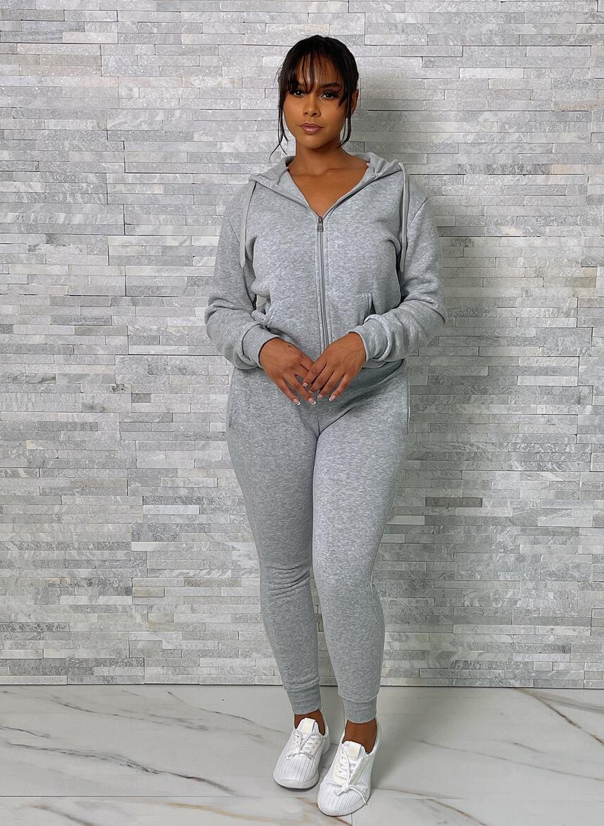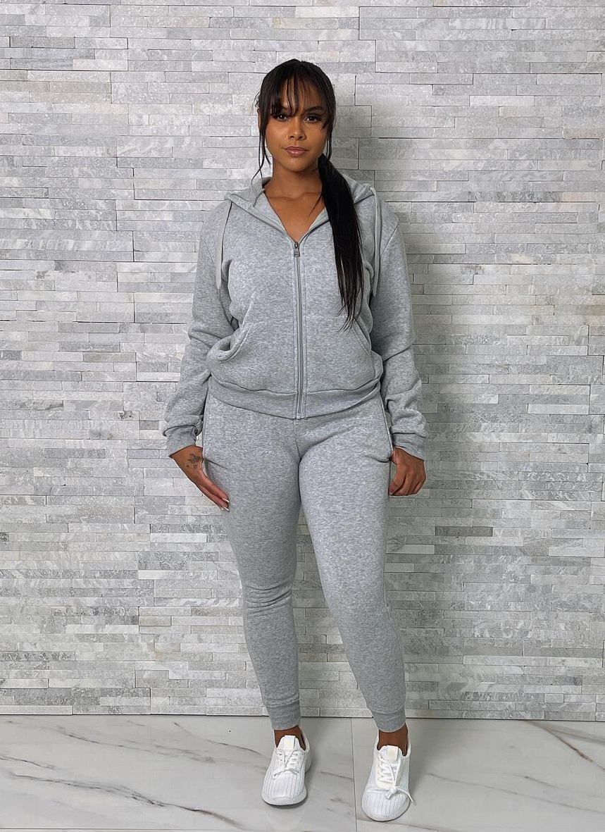 ACCESS LADIES 2PC ACTIVEWEAR/JOGGER ZIPDOWN FLEECE SET (LT GREY)