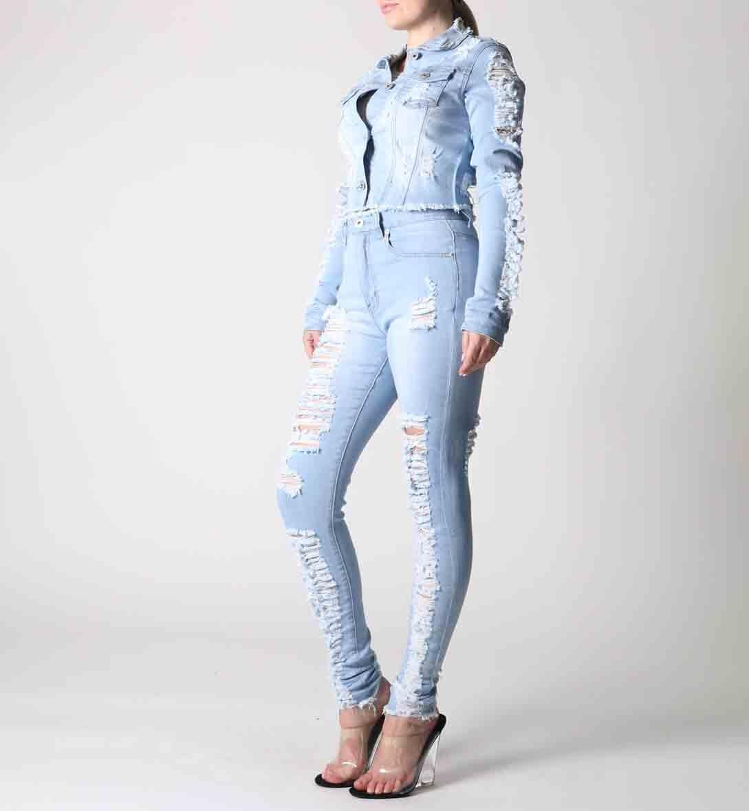 REDFOX HEAVY DISTRESSED DENIM SET ( LT BLUE) SD123/123P