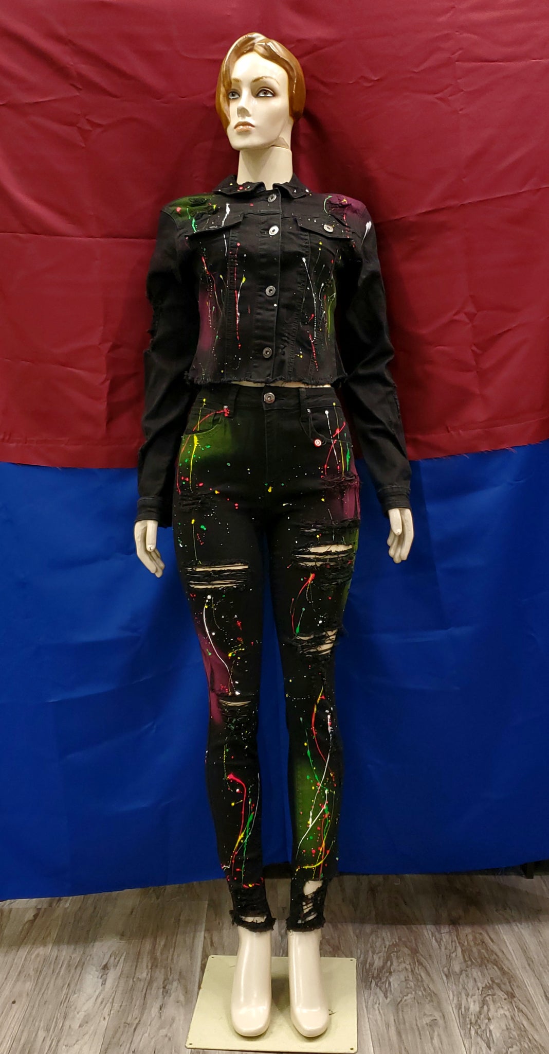 REDFOX NEON SPLATTER 2pc. DENIM SET (Black)