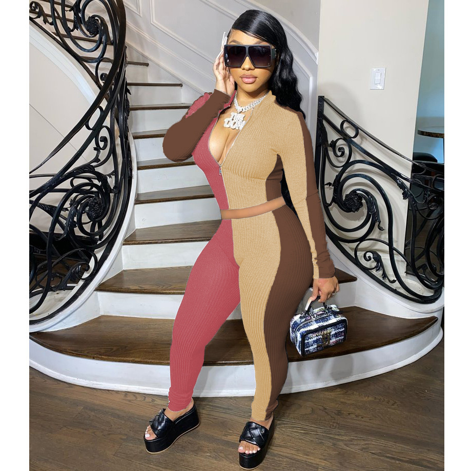 Women Knitted Patchwork Ribbed L/S 2 pc. Set (Neapolitan) IN STORES NOW