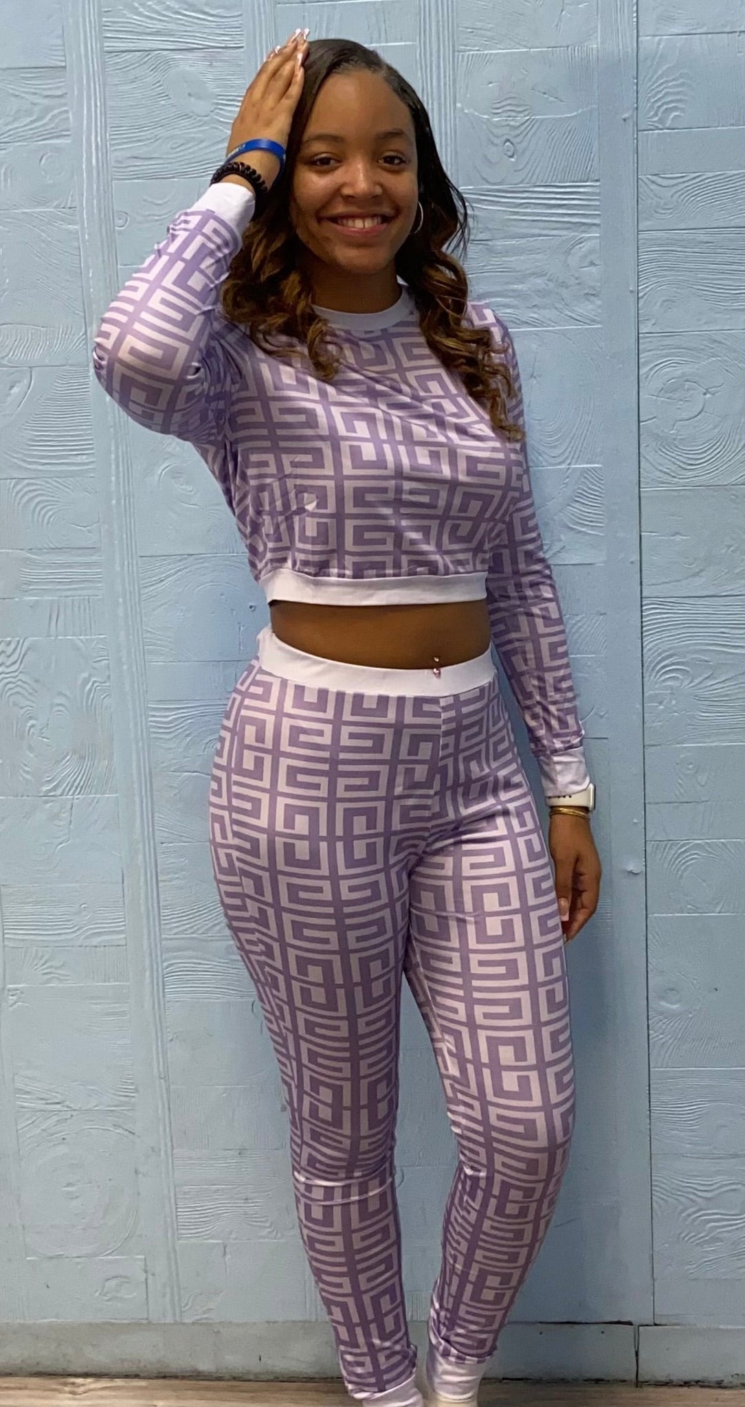 WOMEN'S VINTAGE PRINT CROP TOP & PANT SET (PURPLE) IN STORES NOW!