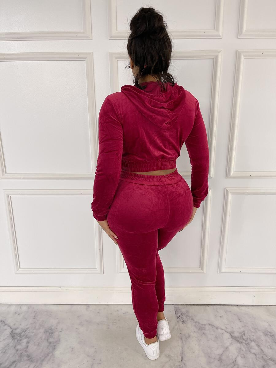 ACCESS LADIES 2PC ACTIVEWEAR VELVET JOGGER OUTFIT SET (BURGUNDY)
